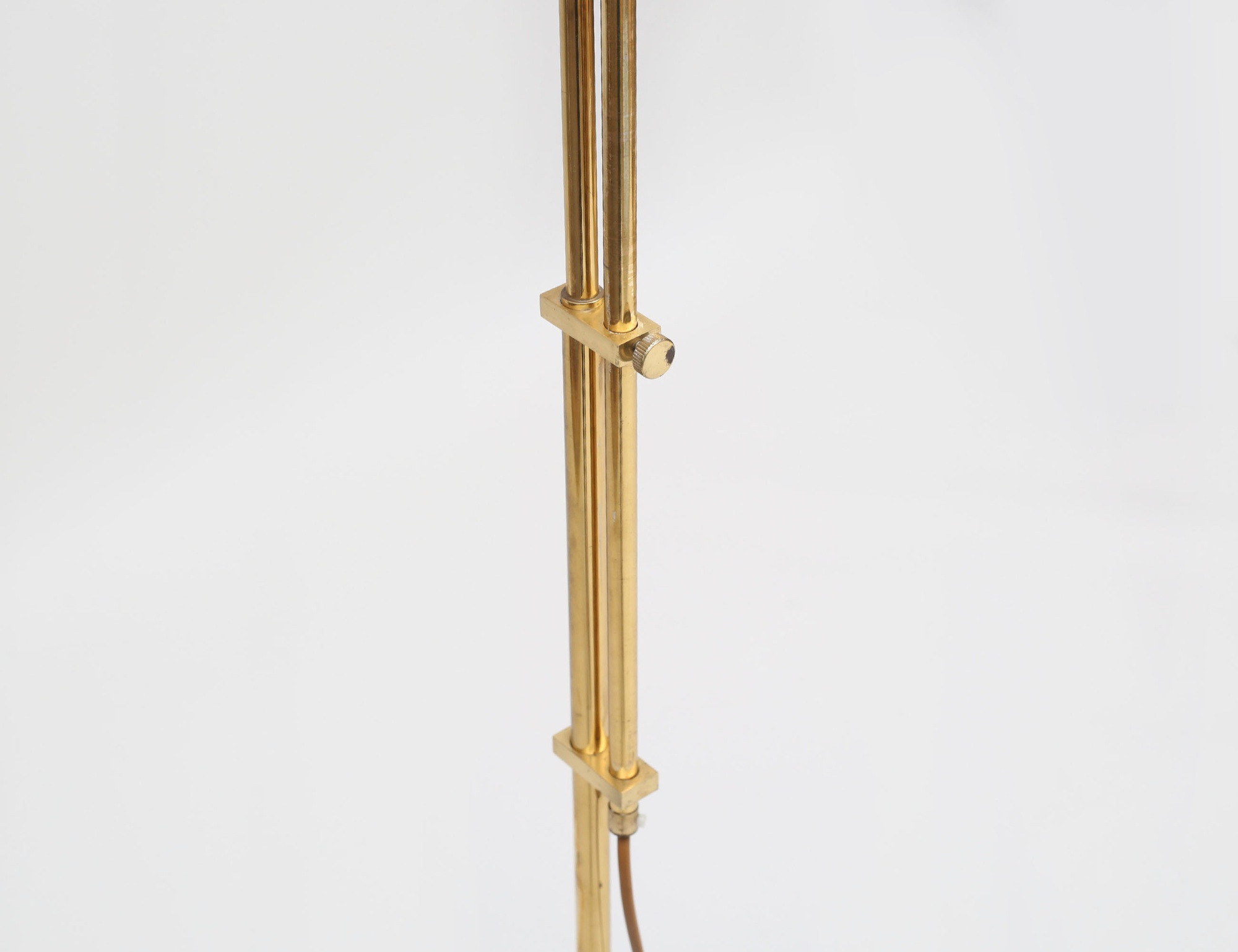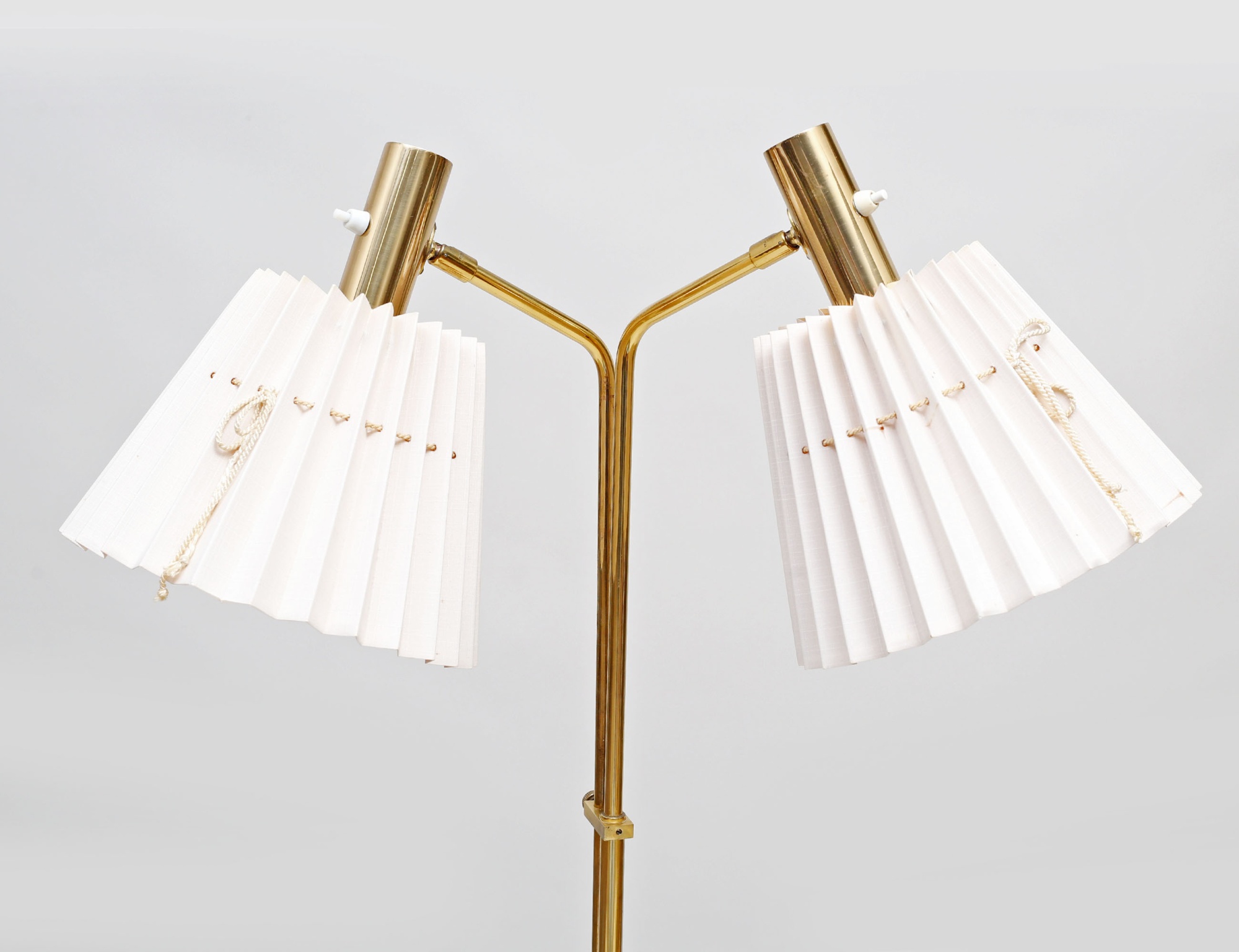 modell G-134, mässing, två ljusarmar varav en höj- och sänkbar, höjd 140 (smärre fläckar på skärm)