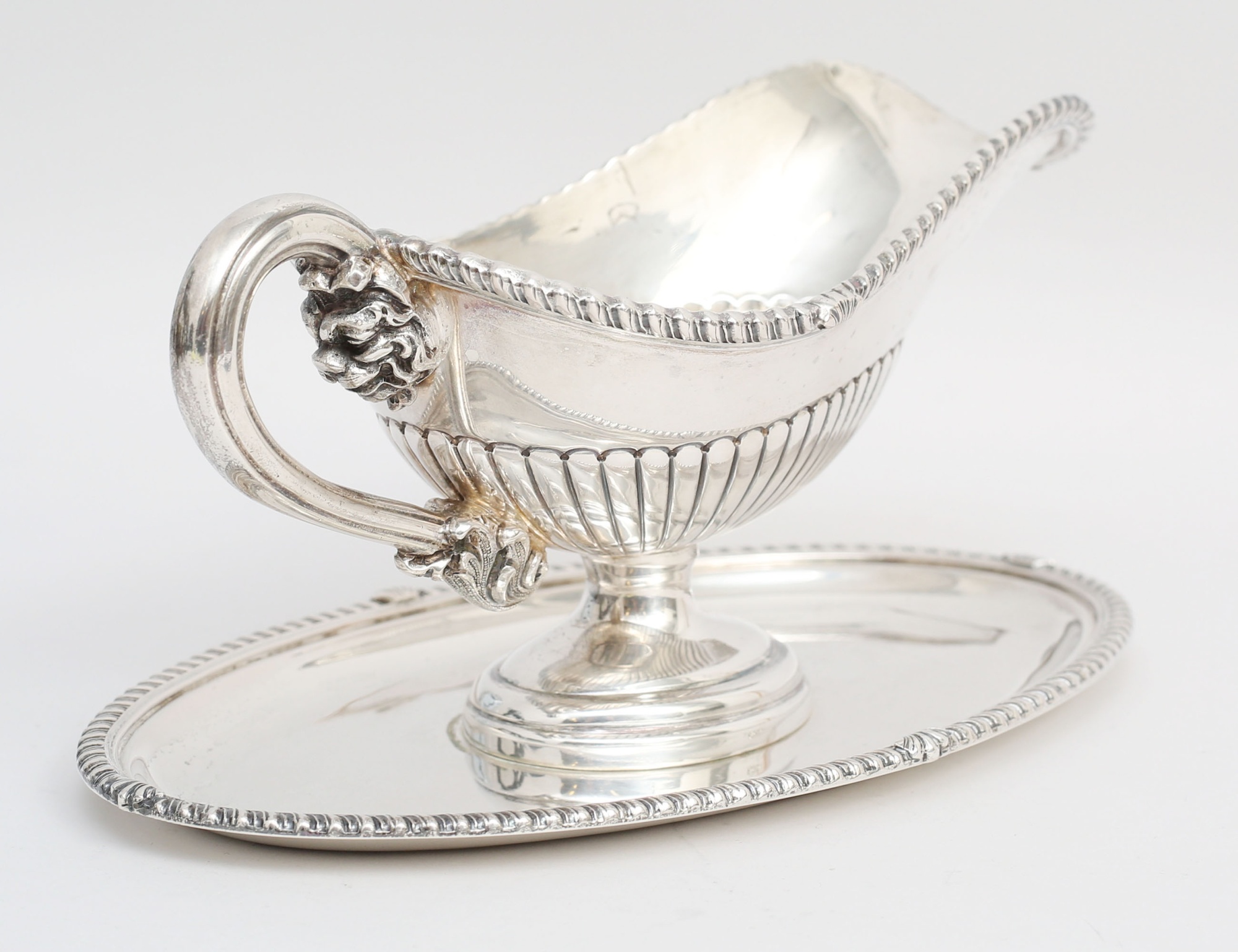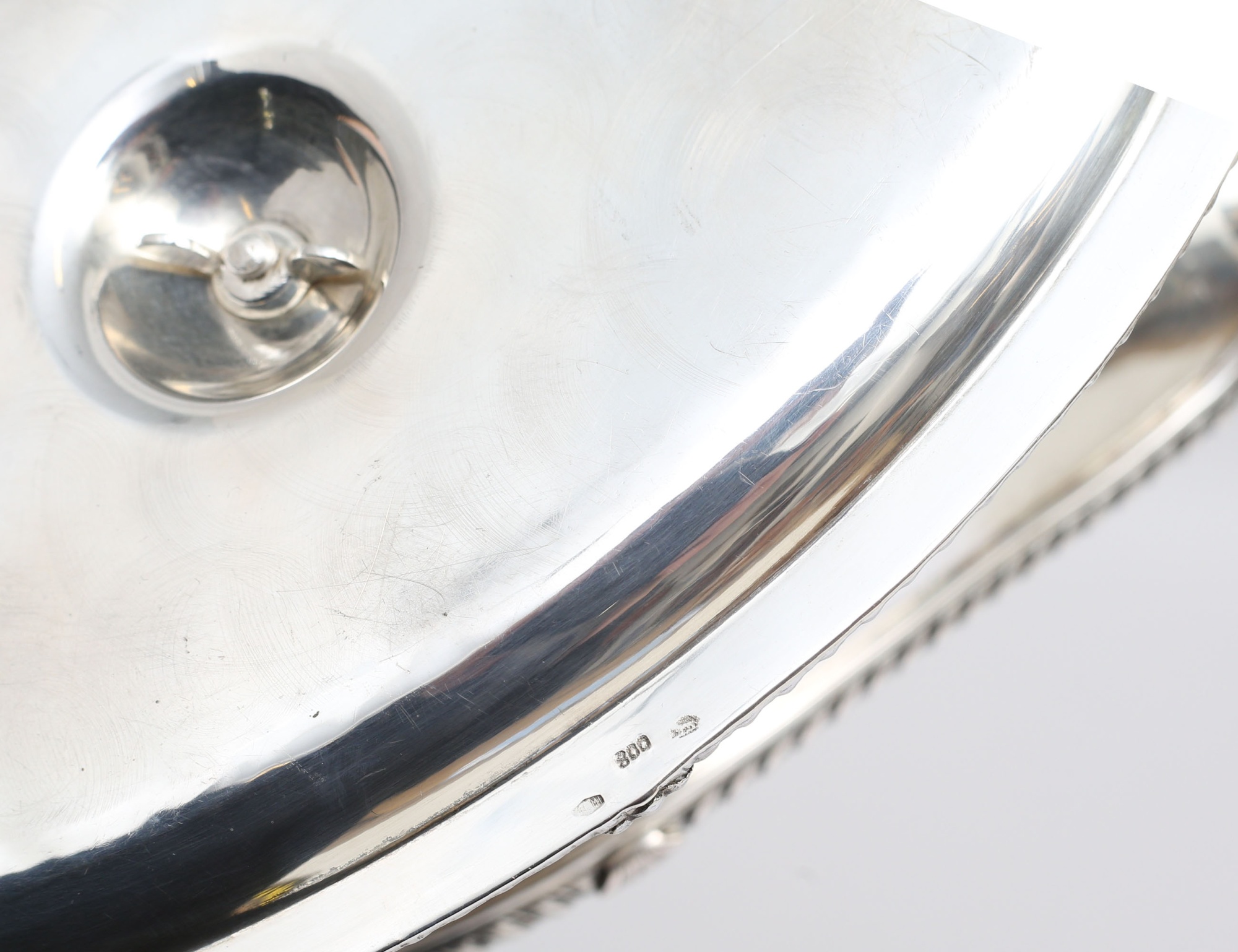 silver 800/1000, vriden kantdekor, hänkelfäste med lejonmaskaroner och akantus, vikt 580 gram, höjd 10, bredd 22x13