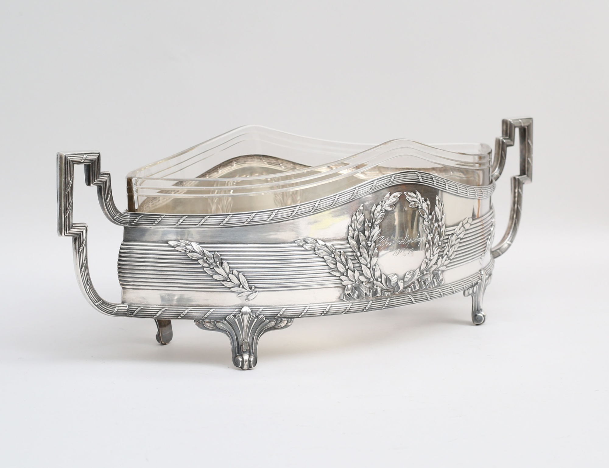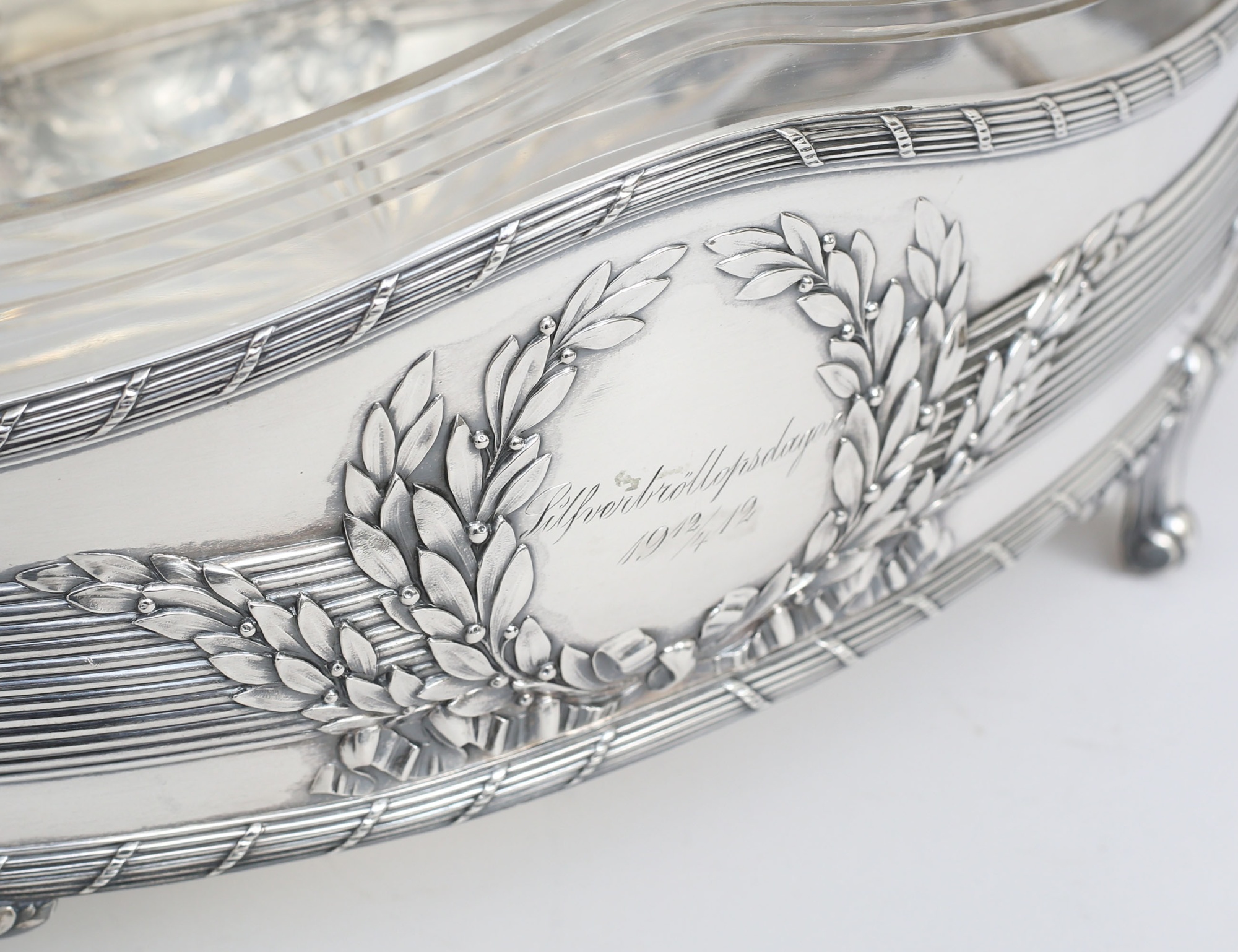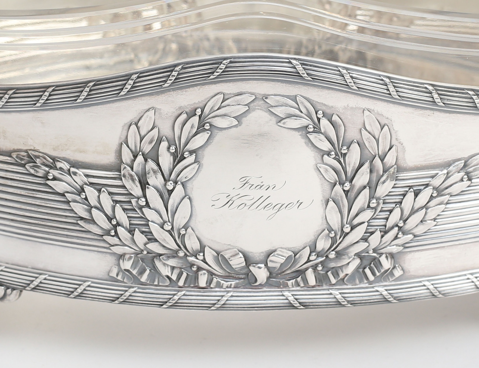 Swenson & Luhr Göteborg 1912, silver, glasinsats, vikt 611 gram, höjd 15, bredd 46x19 (inspkription, glasinsats med bottenspricka)