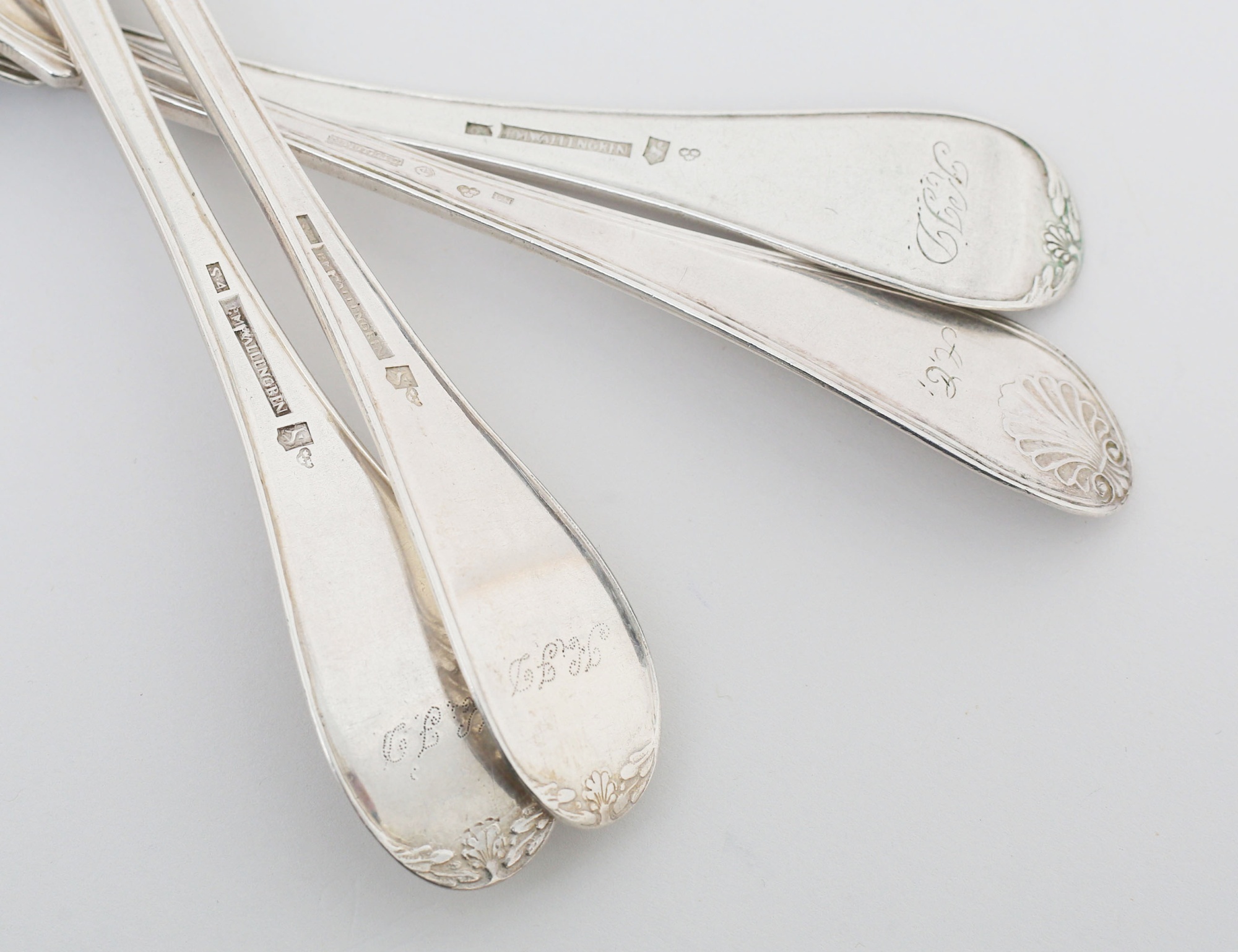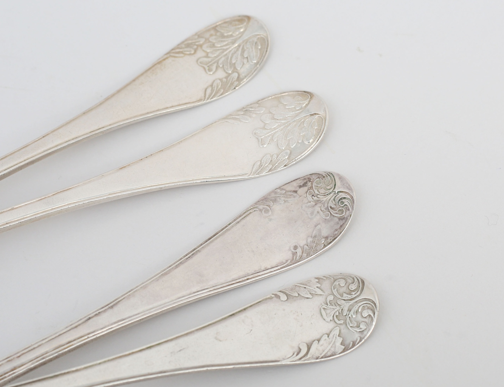 silver, 2+1 stycken P.M. Wallengren Ystad 1848/44, 1 styck J.P. Tullgren Kristinehamn 1850, vikt 242 gram (4)