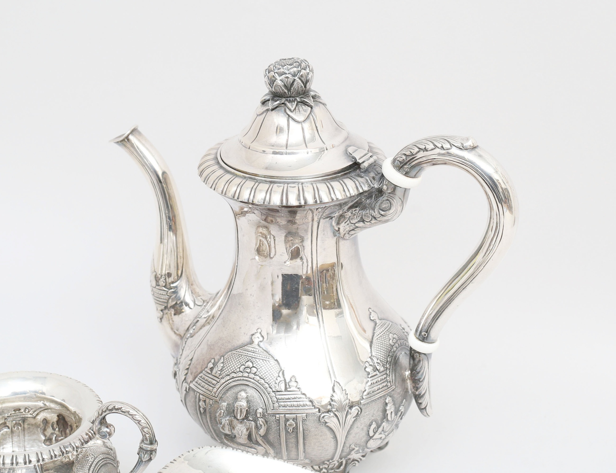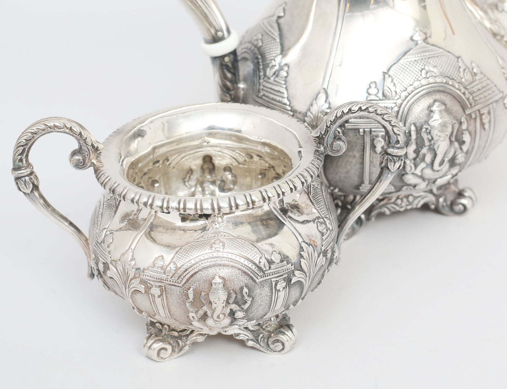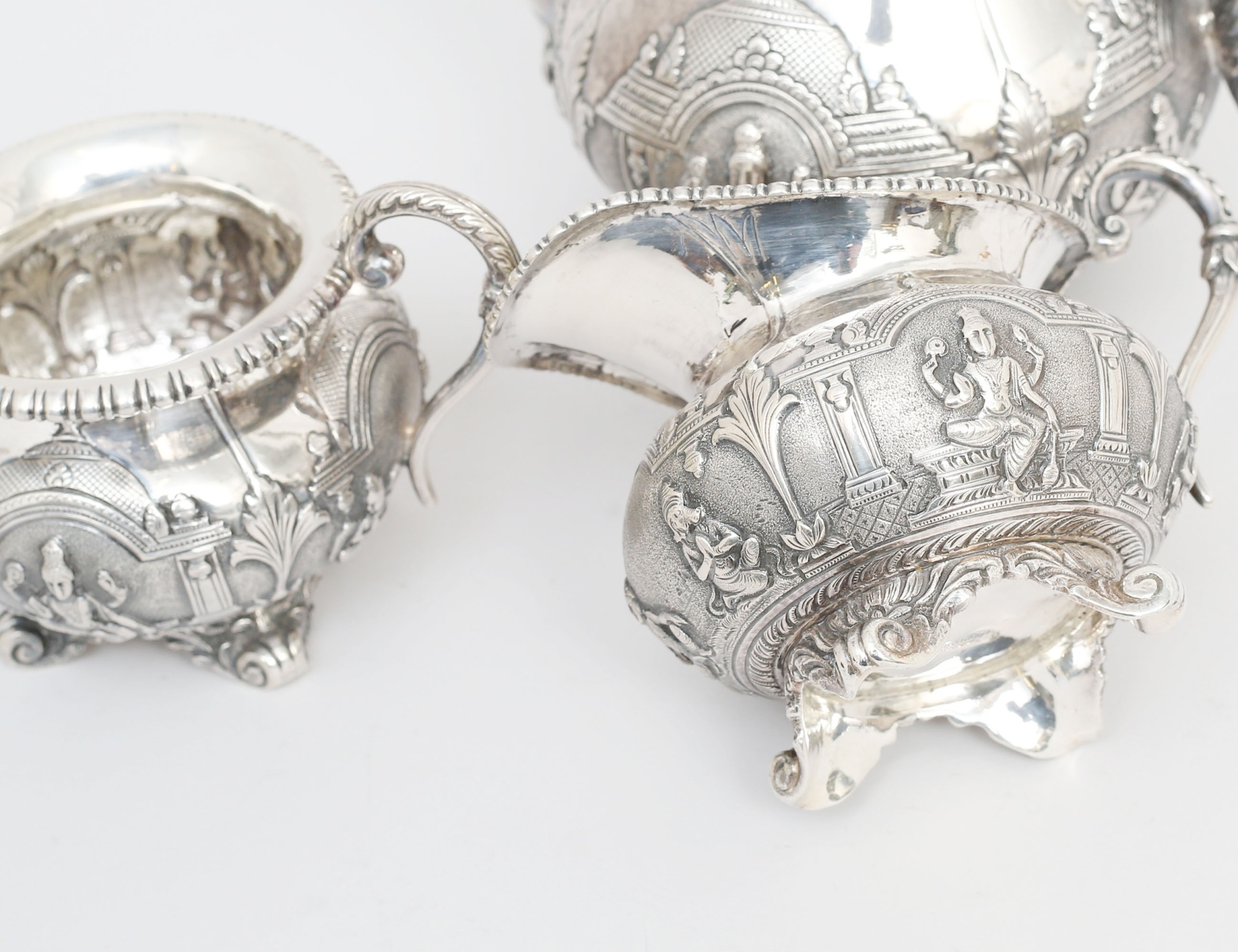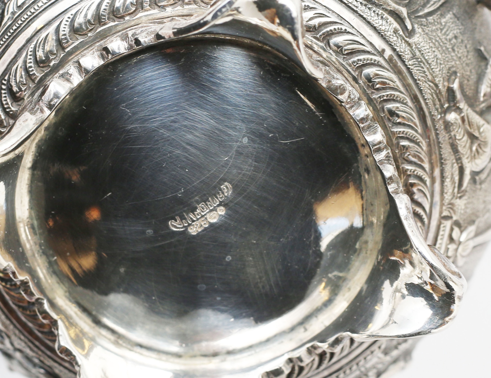 1 del sterlingsilver, 2 delar silver, svenska importstämplar, orientalisk reliefdekor, tassfötter, vikt 1564 gram, höjd -24
