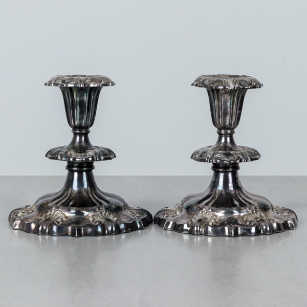 Ljusstakar, ett par, försilvrad koppar, 1900-tal