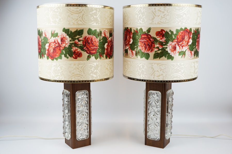 Bordslampor, ett par, trä/glas, Elpe-Armatur AB.