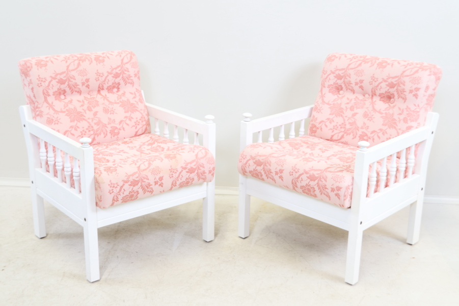 Bilder Fåtöljer, ett par, trä/textil, 1900-talets andra hälft.