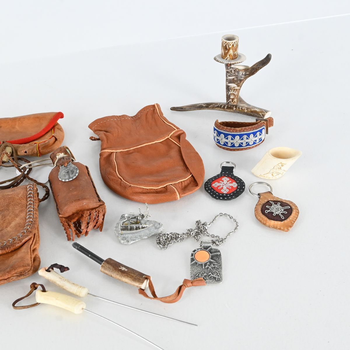 Bilder Parti skinnpungar, nyckelringar, armband mm.