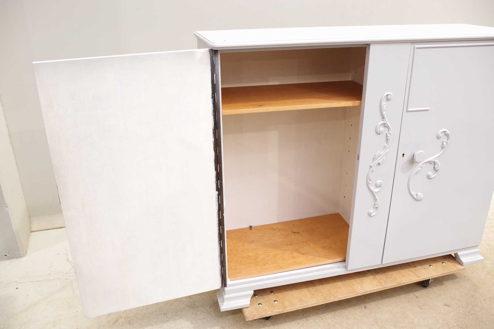 LINNESKÅP 1900 talets första hälft, senare målning. H:118x 140x 45cm.