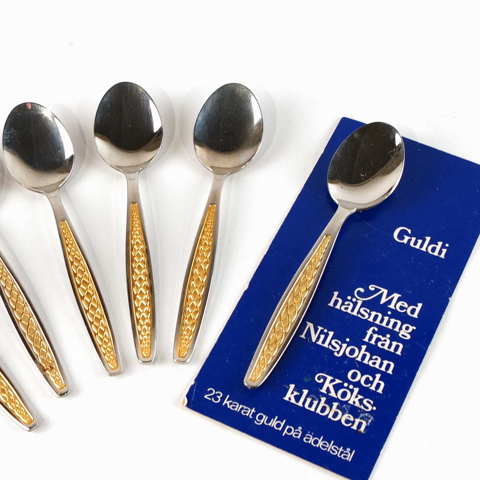 KAFFESKEDAR 6st Nilsjohan, Guldi. L:10,5cm.