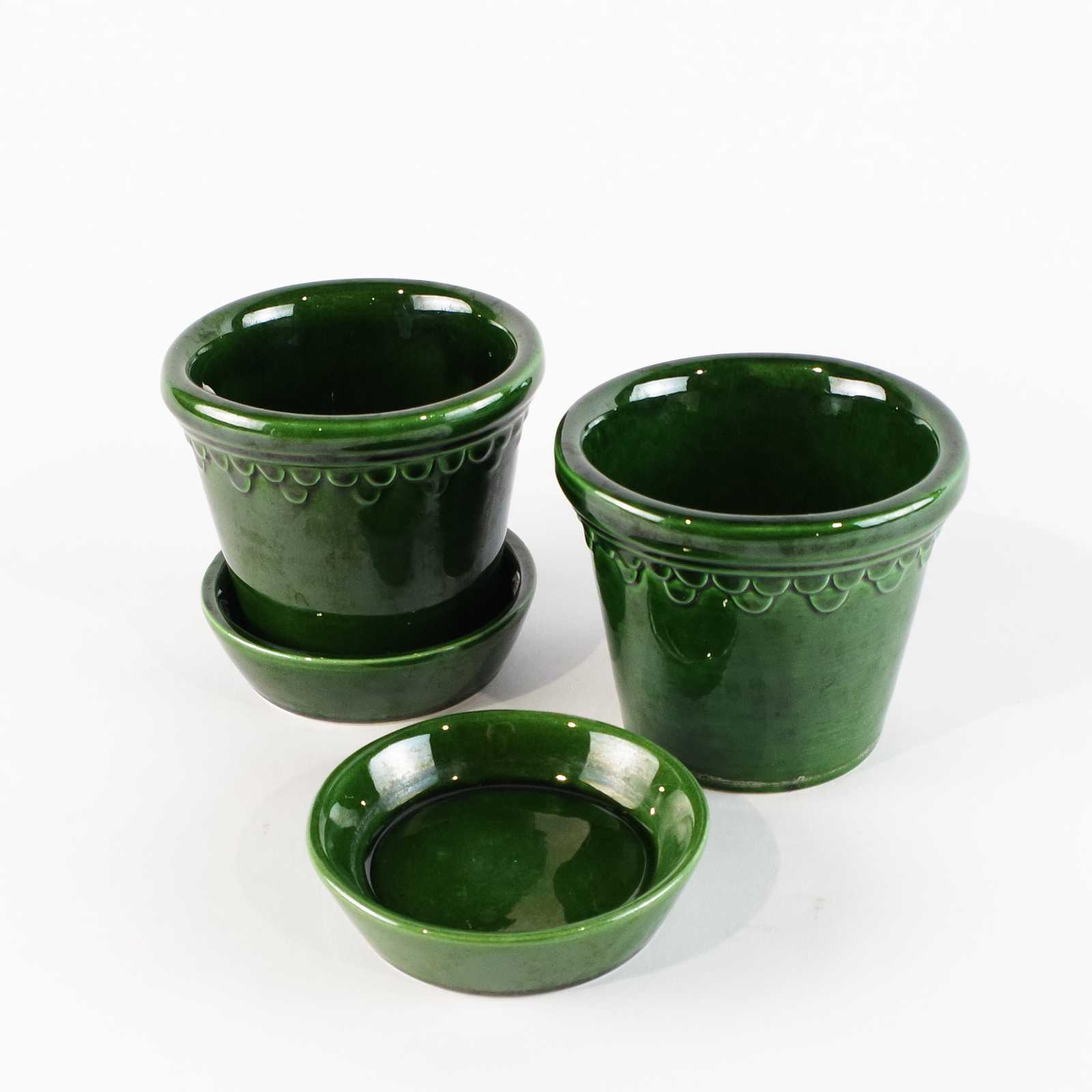 Bilder KRUKOR 1 par, grönglaserad stengods, Bergs Potter, Danmark. D:10cm.