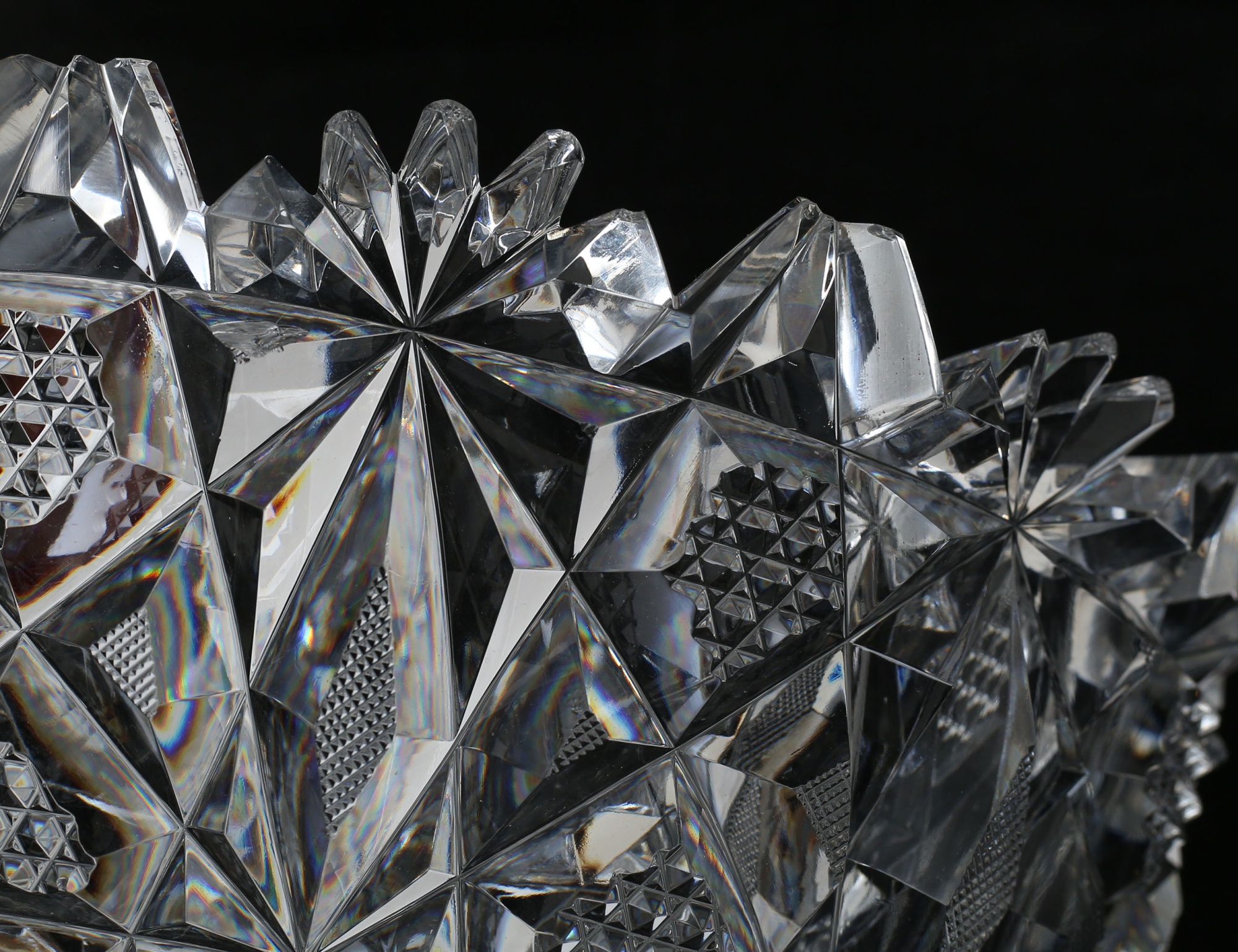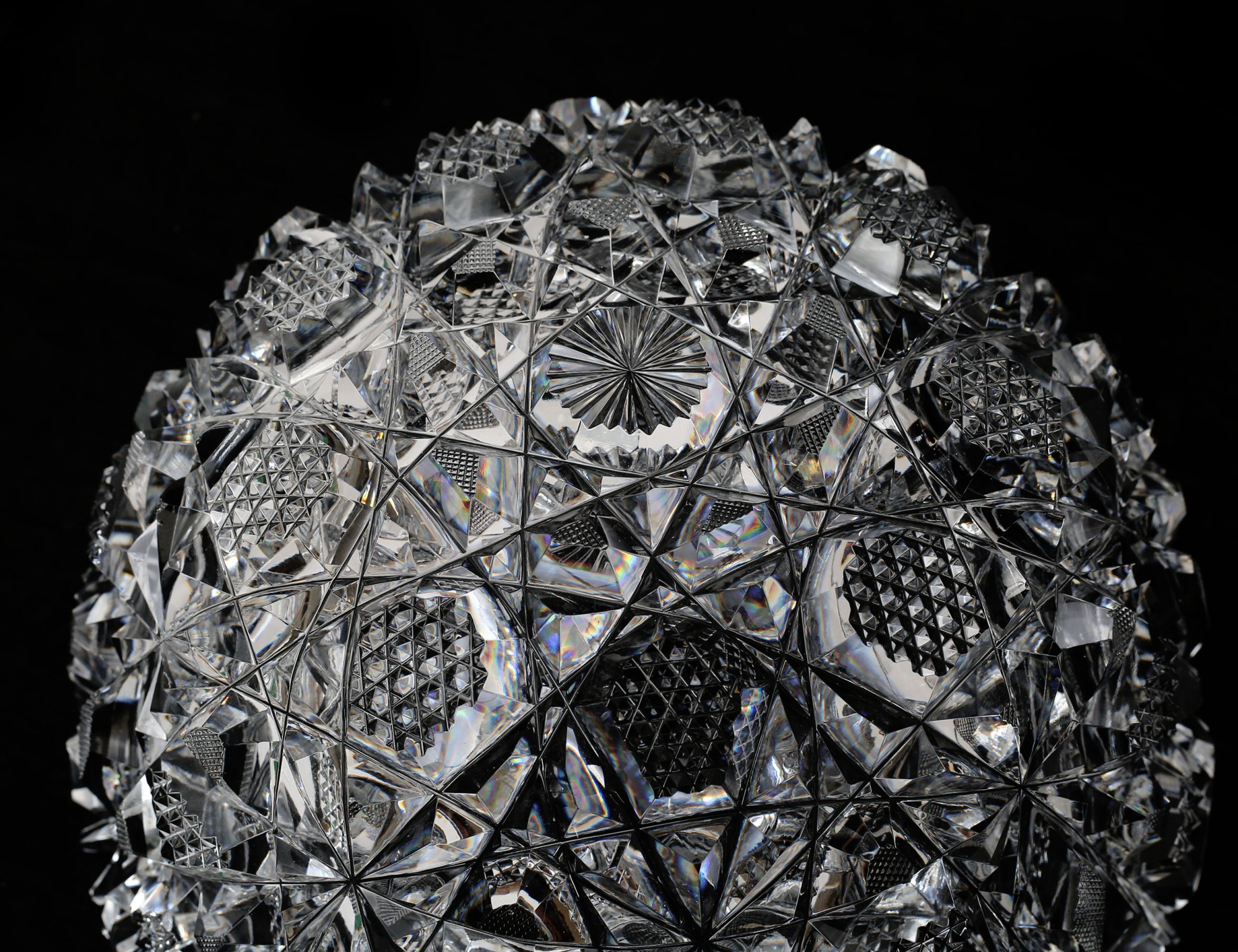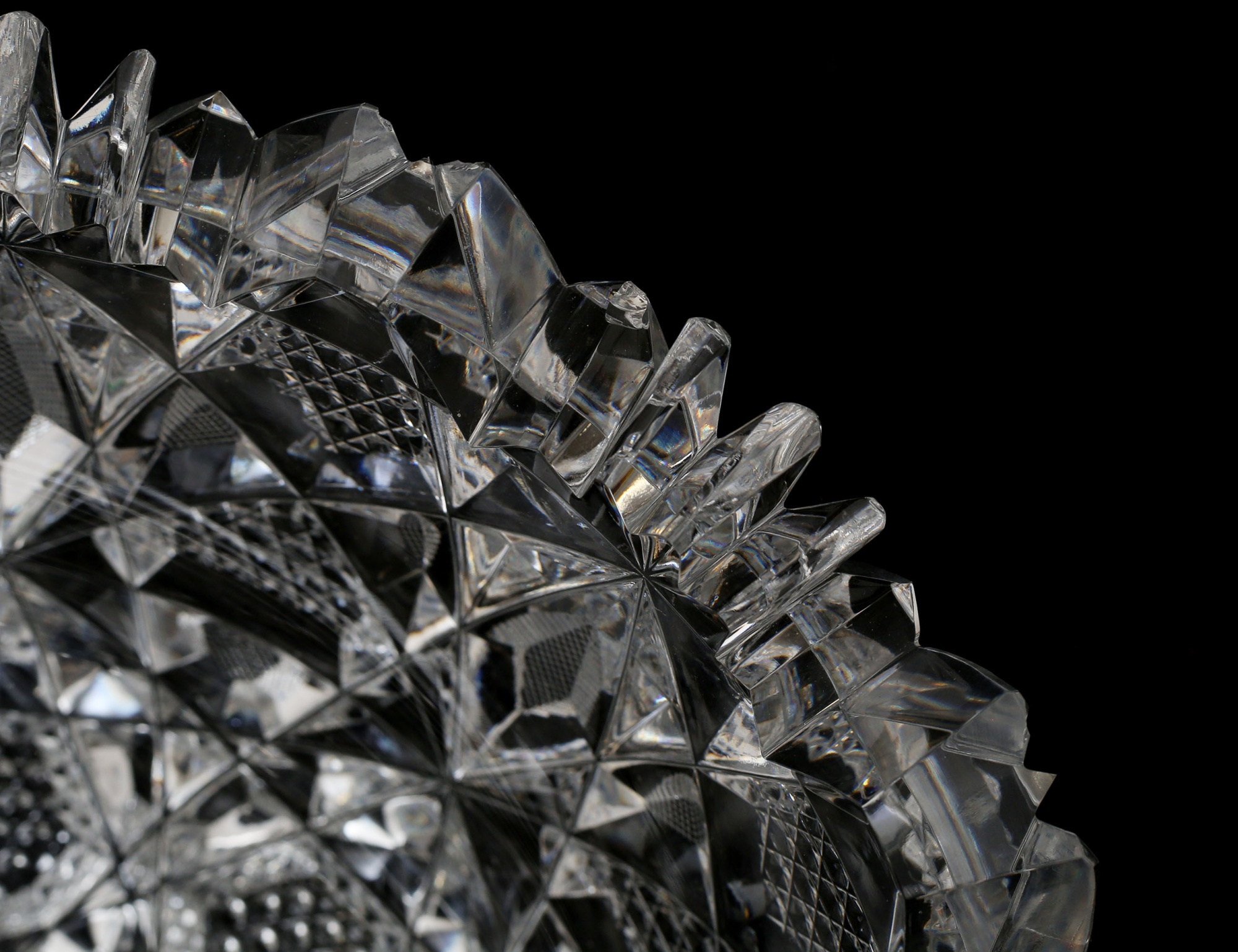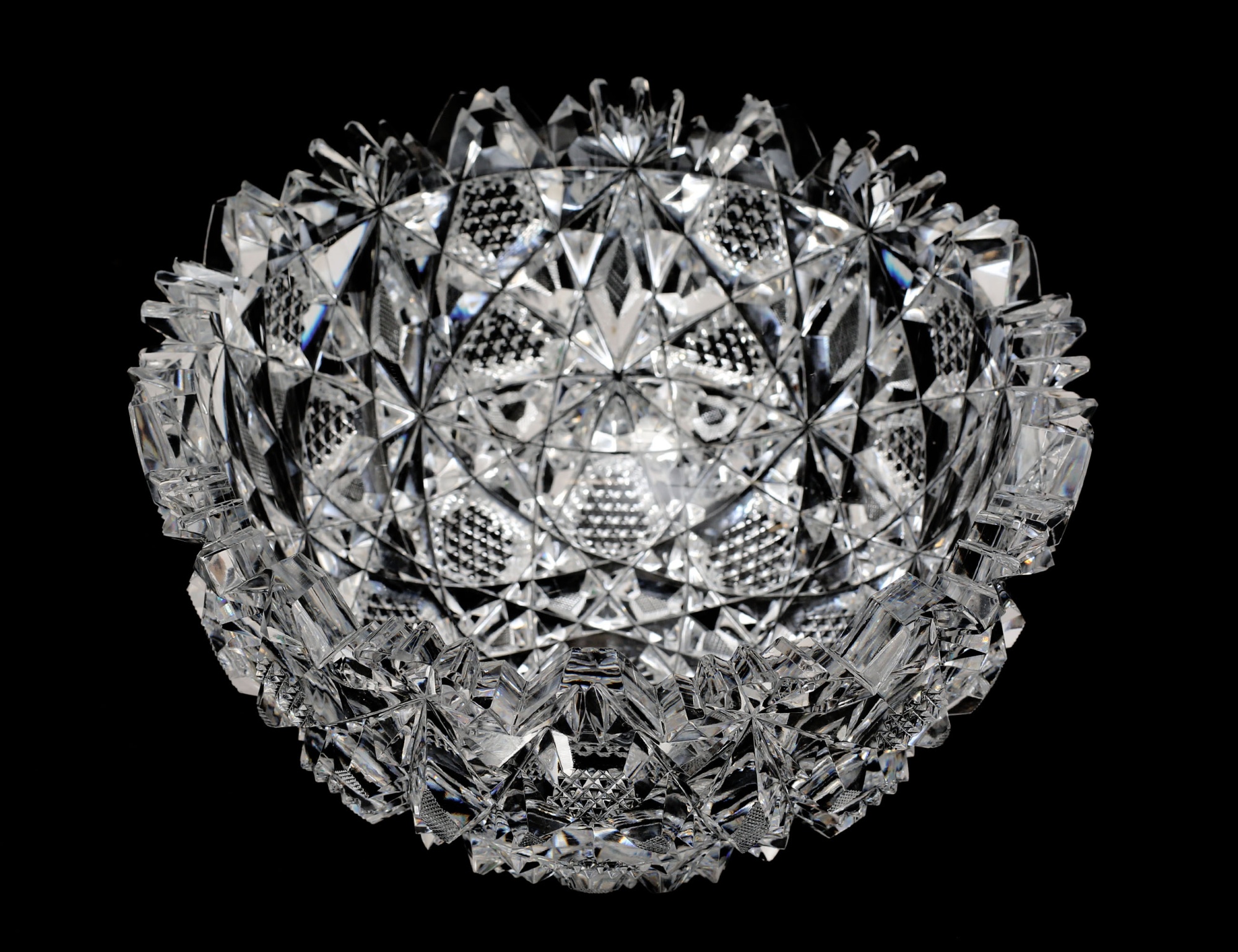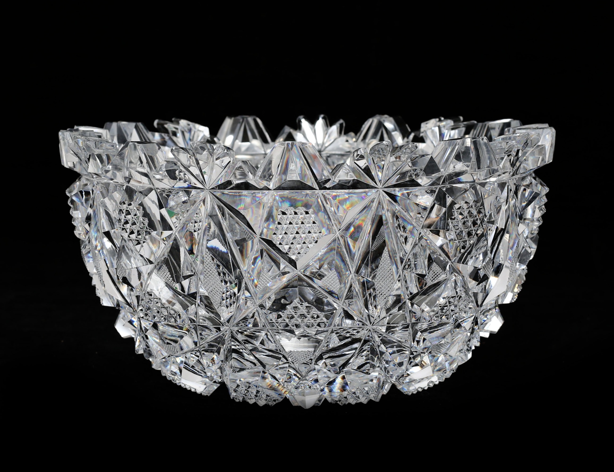 "Tsarens skål" eller "Dukatskålen", modellen formgiven 1896 ursprungligen tillverkad för tsar Nicolai den andre av Ryssland, utförd av bröderna Ferdinand och Wilhelm Stude, rikt skärslipad dekor, före Kosta jobbade bröderna i St. Petersburg och Finland, höjd 14,5, diameter 26,5 (smärre naggar)