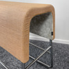 Begagnad barpall från Materia. Modellen heter Plint och är formgiven av Sandin & Bülow. Unik design med gungfunktion för flexibilitet. Plint är behaglig att sitta på och pallen är designad så att man kan sitta som vanligt med båda benen på ena sidan eller gränsla och ha ett ben på vardera sida. Stativ med gunga i krom och sits i ett orange slitstarkt tyg. Formgiven av Sandin & Bülow.