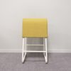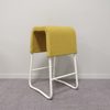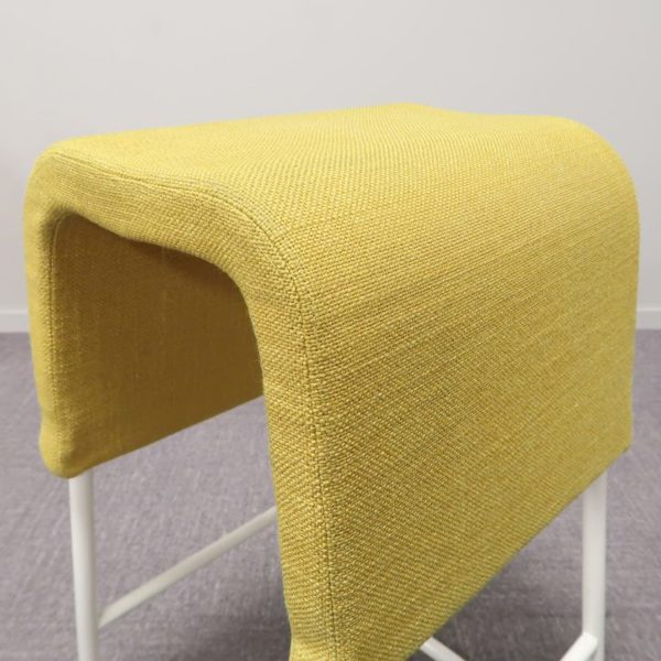 Begagnad barpall från Materia, modell Plint. Plint och är formgiven av Sandin & Bülow. Plint är behaglig att sitta på och barpallen är designad så att man kan sitta som vanligt med båda benen på ena sidan eller gränsla och ha ett ben på vardera sida. Klädd i gulgrönt. Stativ i vitlack.