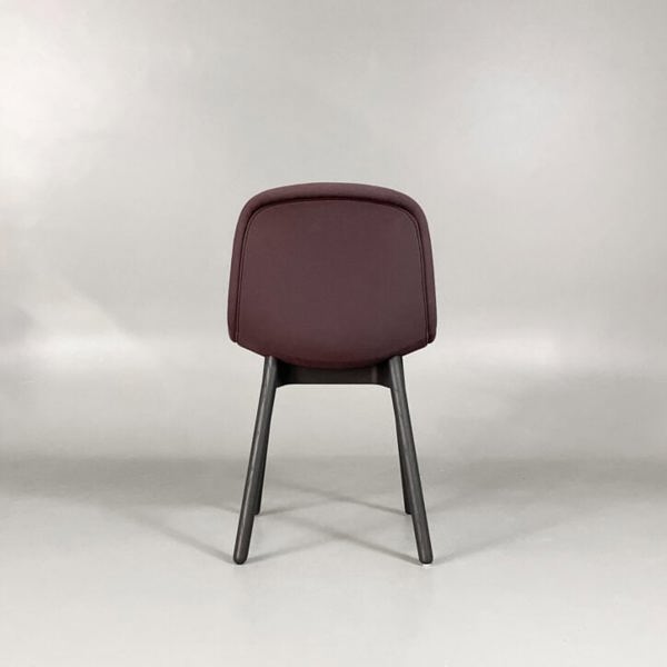 Begagnad stol från Hay. Modellen heter Neu 13 Upholstery. Stolen har sits helklädd i lila-brunt tyg och runda ben i massiv svartlackad ek.