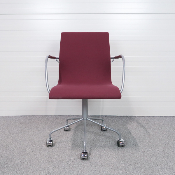Arbetsstol, Atlas, från kända Lammhults. Stolen är formgiven av Foersom & Hiort-Lorenzen och är en av Lammhults storsäljare genom åren. Mycket bekväm då den har en flexibel rygg som svänger vid mittpunkten för att möjliggöra en avslappnande position utan att lämna stolen. Läderklädda armstöd. Snurrbar. Hjul.