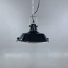 Emaljerad svart taklampa från italien, troligen 1970-tal. Nydragen kabel. Industriell patina.