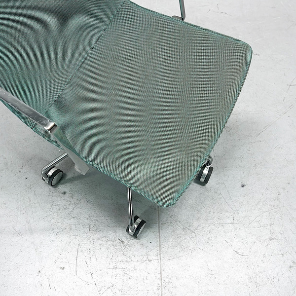 Konferensstol från Lammhults, modell Comet Sport. Sits och rygg i turkost tyg, hjulstativ i krom. Design Gunilla Allard.