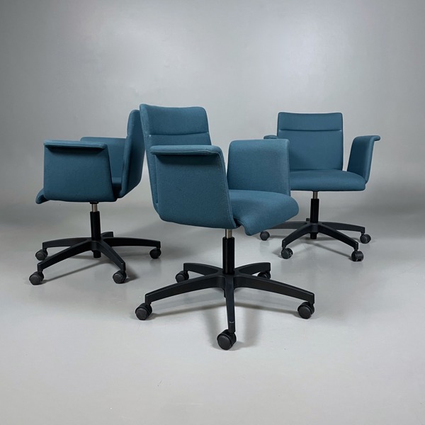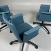 3st konferensstolar från Resize Design. Kan även användas som enklare kontorsstolar. Blå tygklädsel. Snurrbar. Hjul.