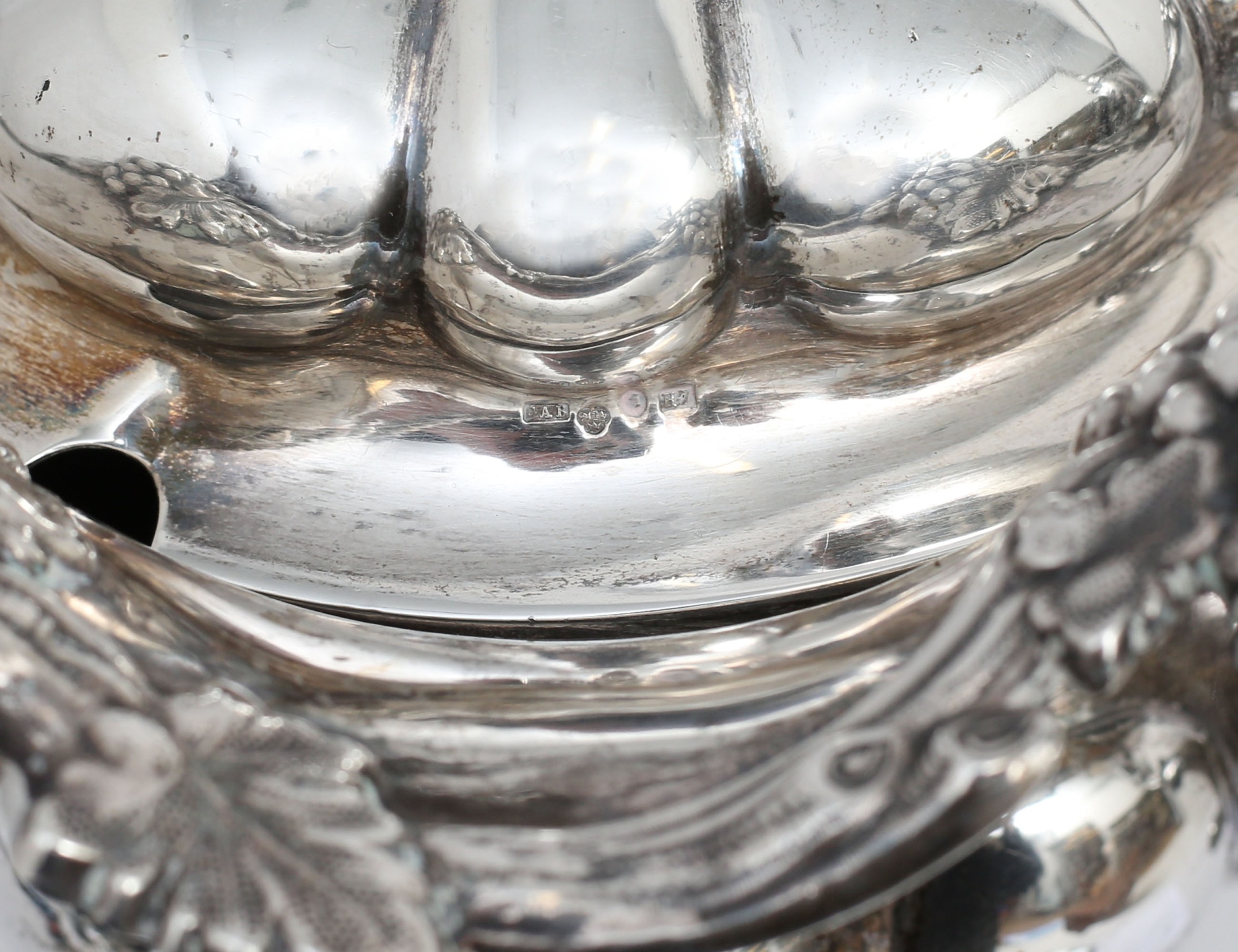 GAB Stockholm 1910, nyrokokostil, reliefdekor av druvor och akantus, delvis genombruten, vikt 1031 gram, höjd 35
