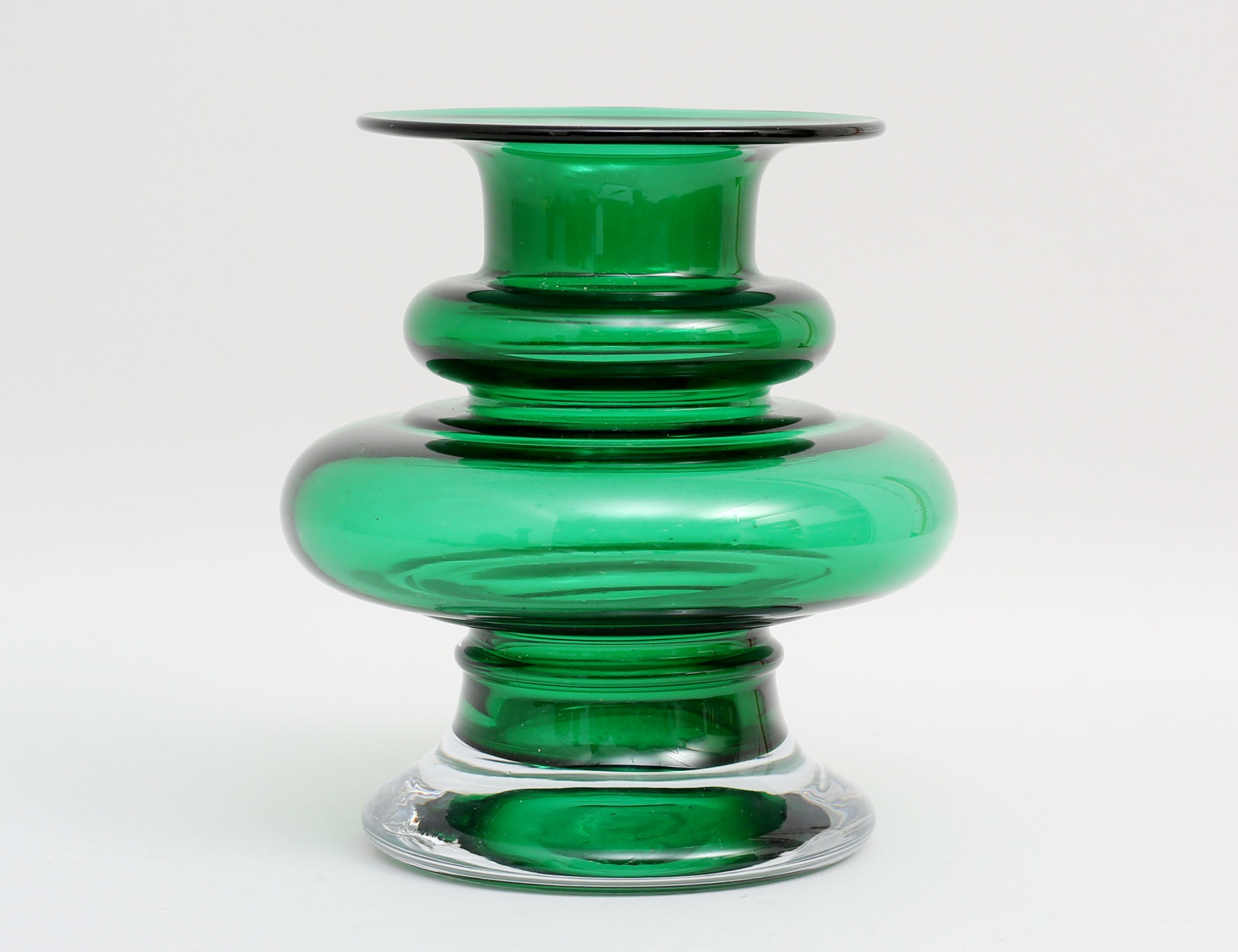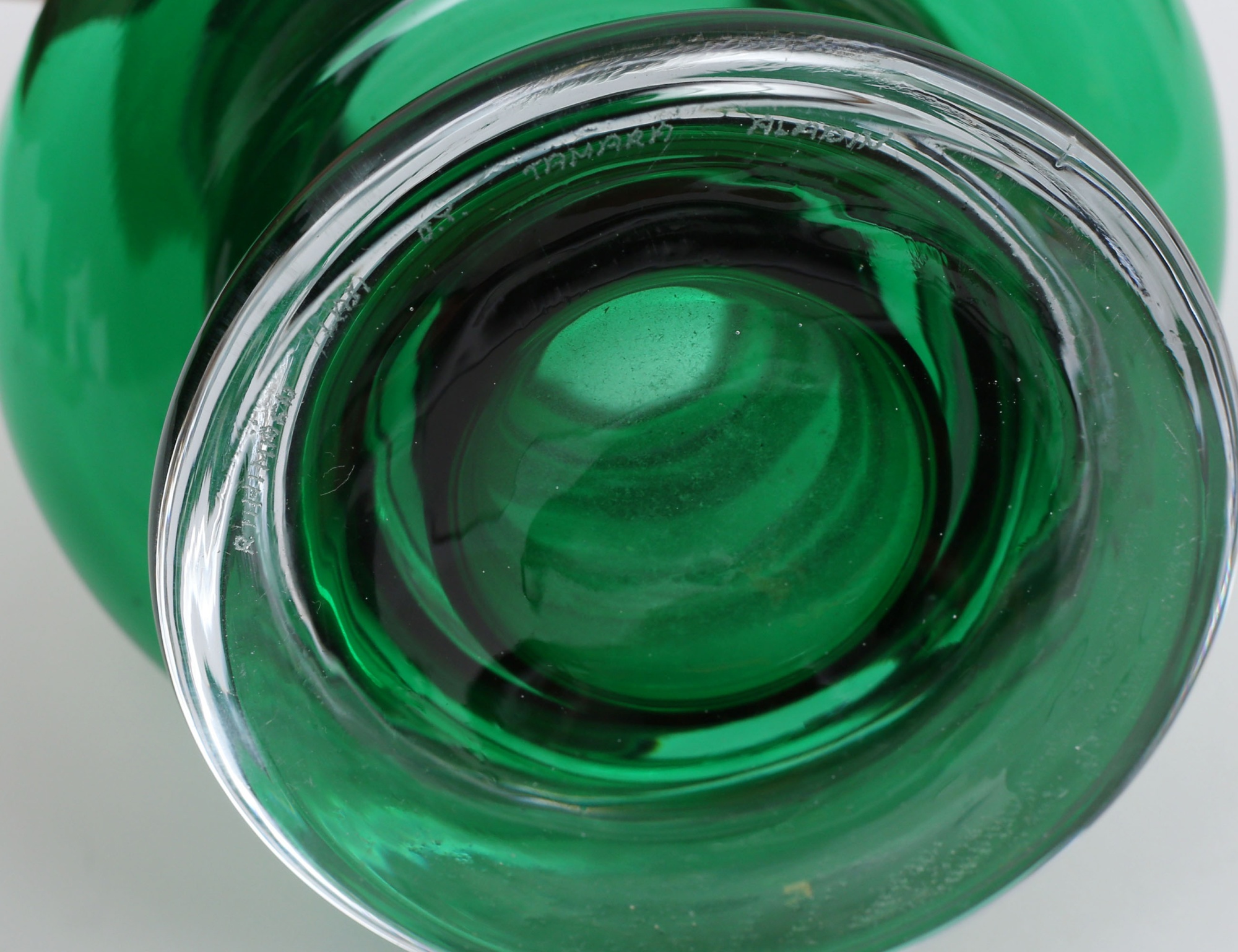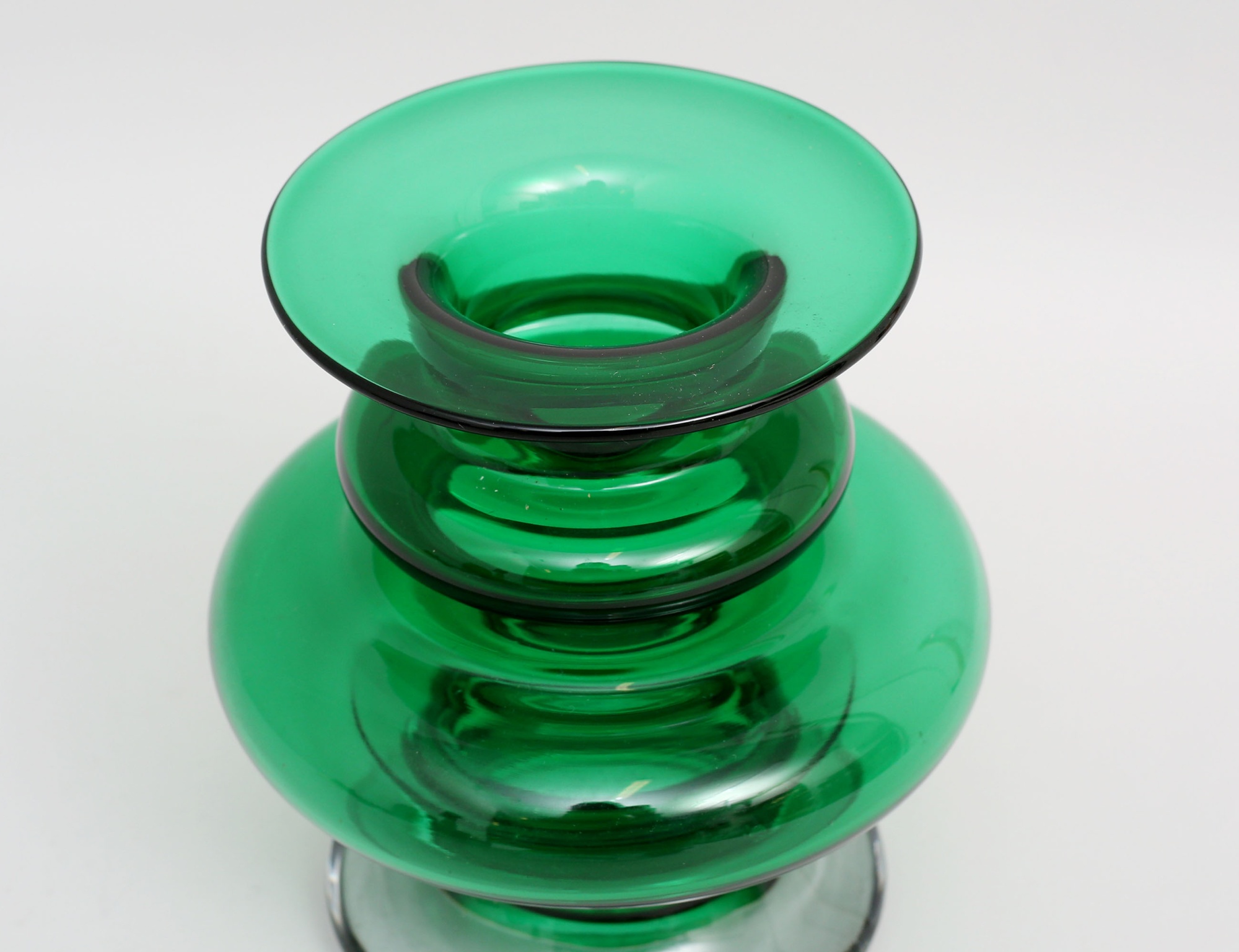 vas "Tornado", Riihimäen Lasi Oy, grön glasmassa, signerad, höjd 17