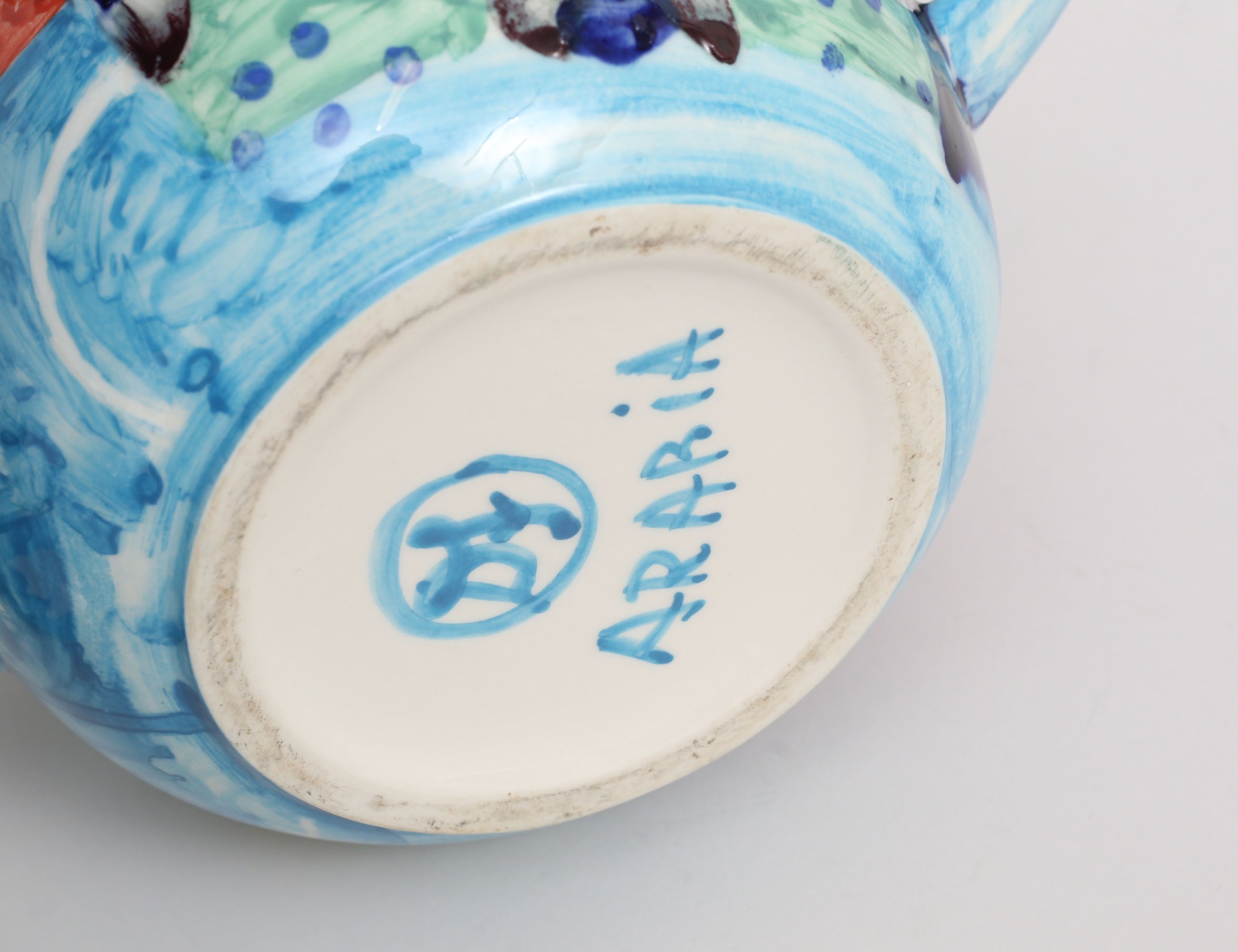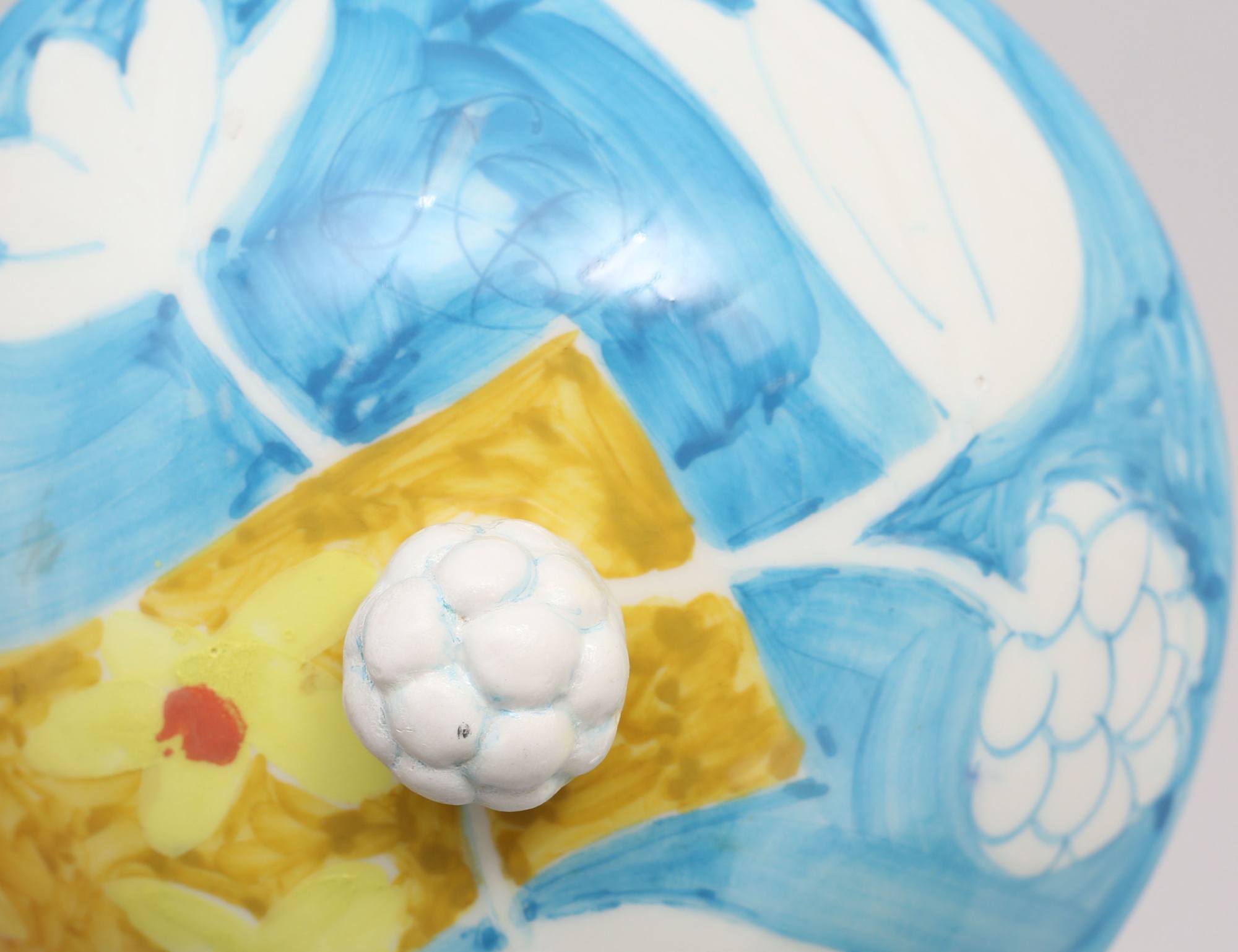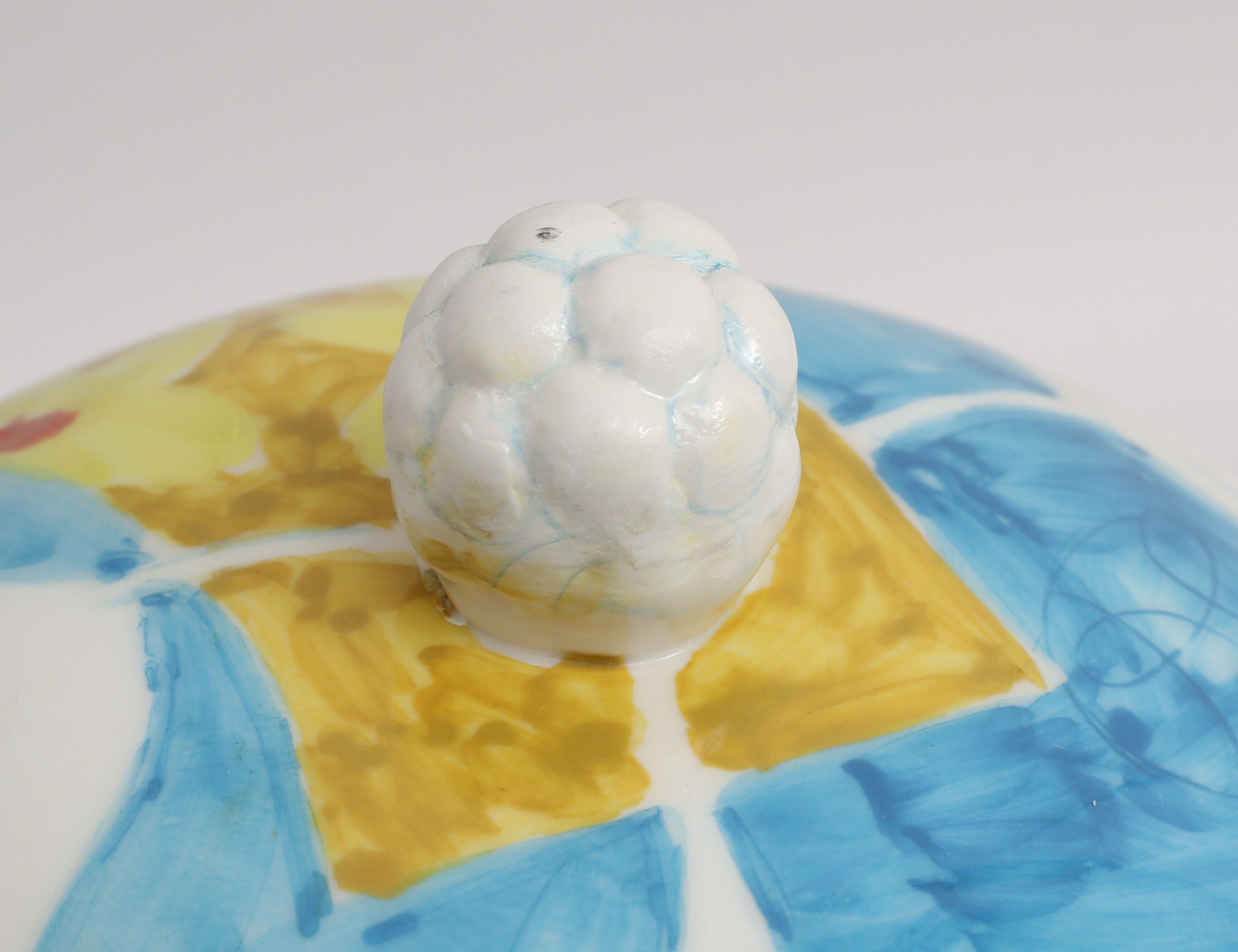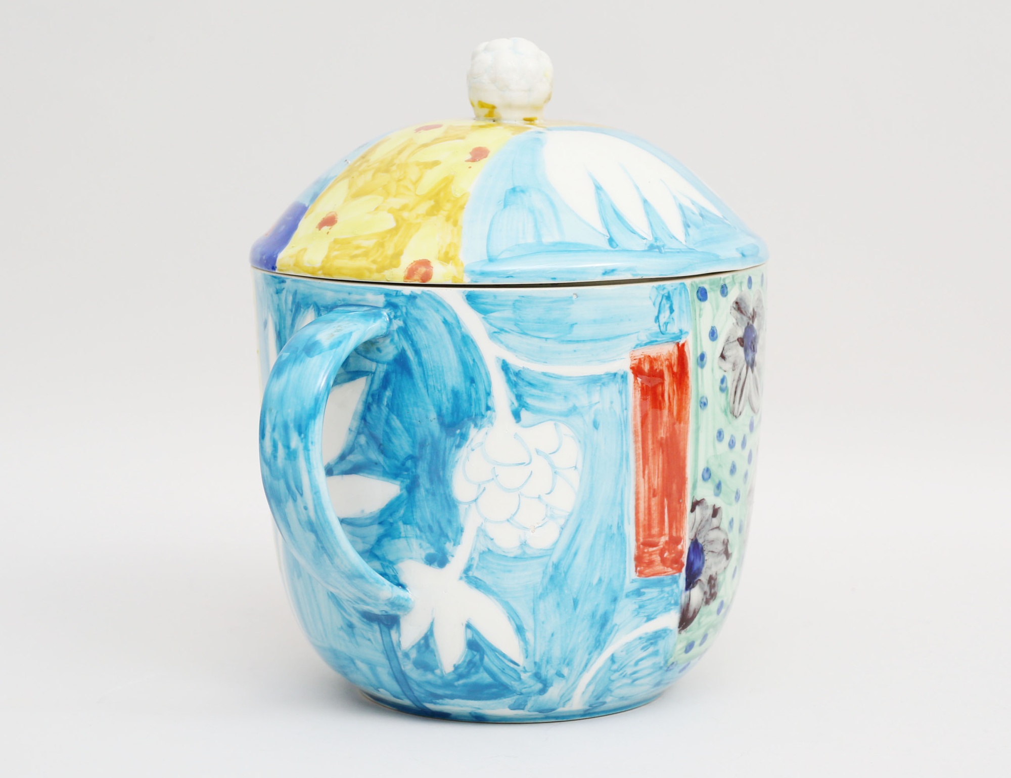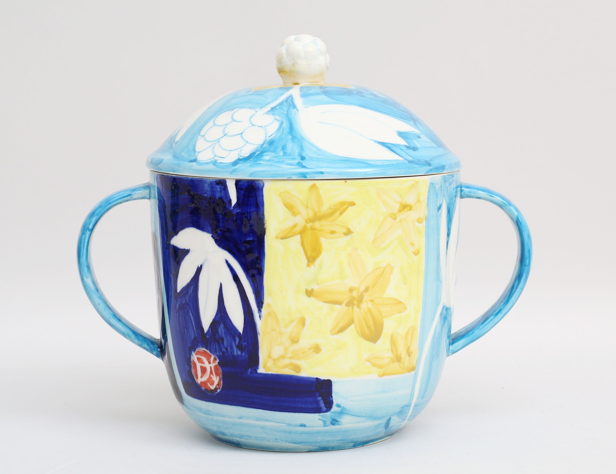 hänkelurna med lock, målad polykrom dekor av blommor under glasyr, monogramsignerad på livet samt undertill, höjd 23, diameter 18