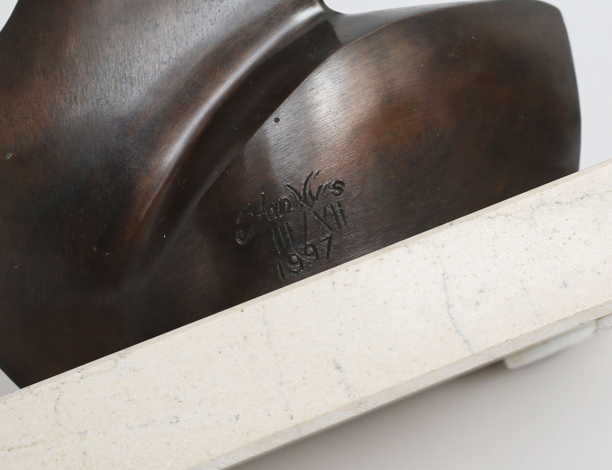 skulptur kvinnofigur, patinerad brons, monterad på stensockel, signerad 1997 och numrerad 3/12, höjd 27