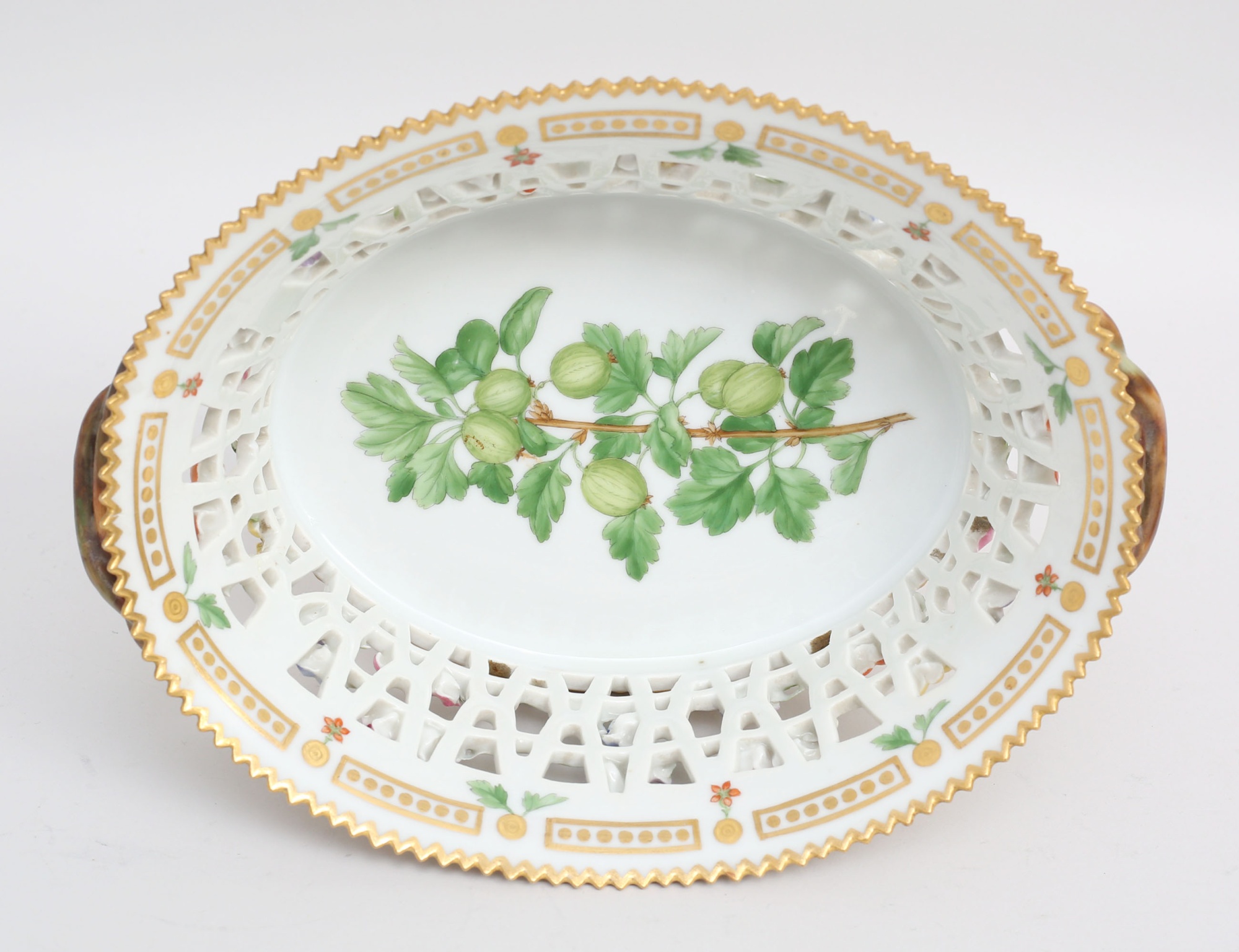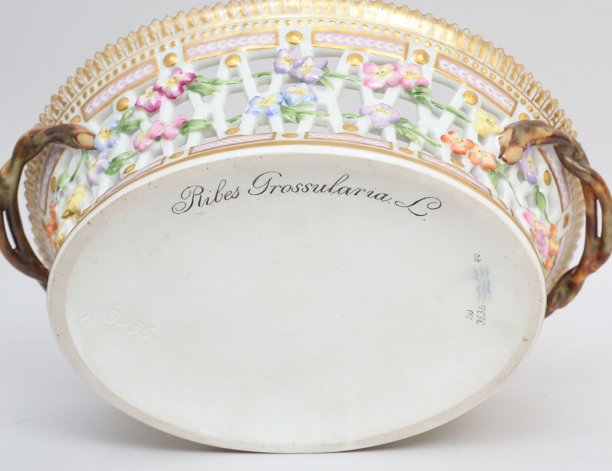 gallerskål modell 3536, "Ribes Grossularia L" (krusbär), höjd 8, bredd 25x18,5 (lagning vid ena hänkeln)