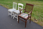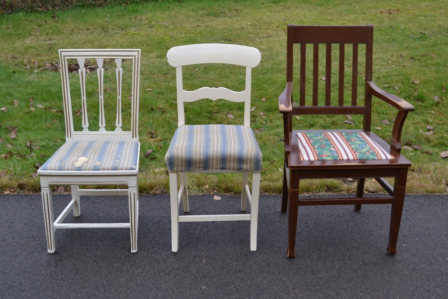 Bruksslitage, skav, repor, färgbortfall, fläckar, söndriga sitsar, renoveringsbehov.