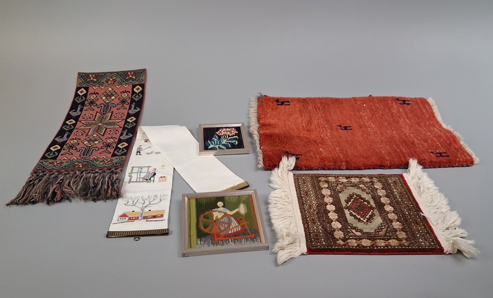 Bilder 2 Små mattor & Bonader, samt 2 Inramade flamskvävnader.