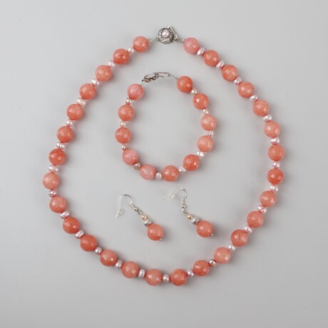 Smyckesskrin + halsband, örhängen & armband med silverlås