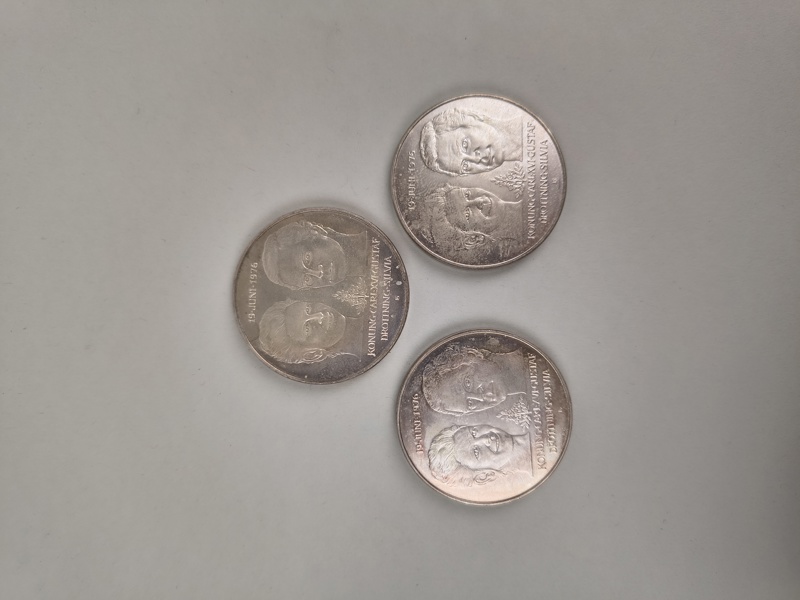 Bilder Minnesmynt, Silver 3 st, Carl XVI Gustaf & Drottning Silver 50 kr 1976
