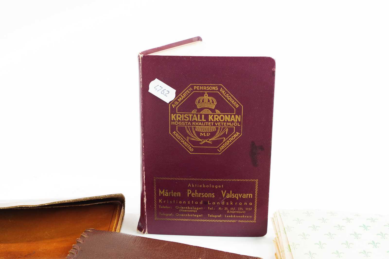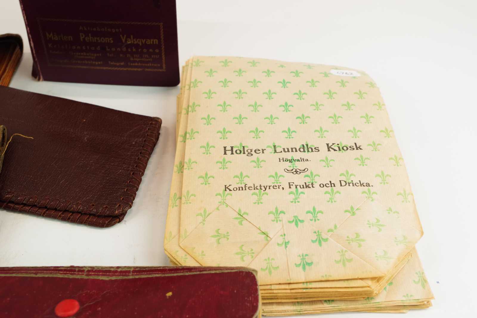 Bilder PAPPERSPÅSAR Holger Lunds kiosk Högvalta, NOTISBLOCK med avrivningsblad, Mårten.Pehrssons Valsqvarn, Kristianstad Landskrona, mm