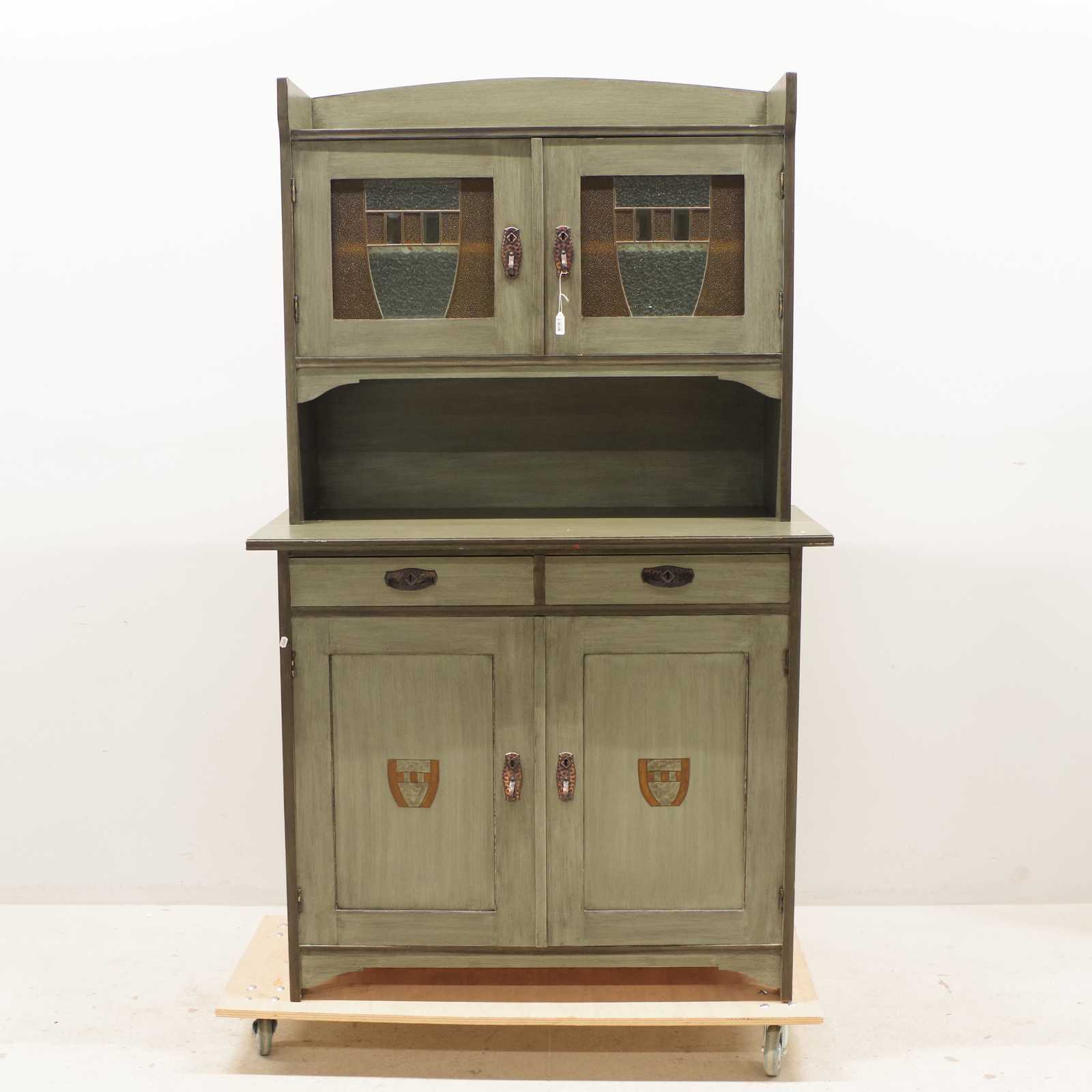 Bilder SKÅP, 2 delar, blyinfattat glas, 1900 talets första hälft, senare renoverat & målat. H: 185x 110x 49cm