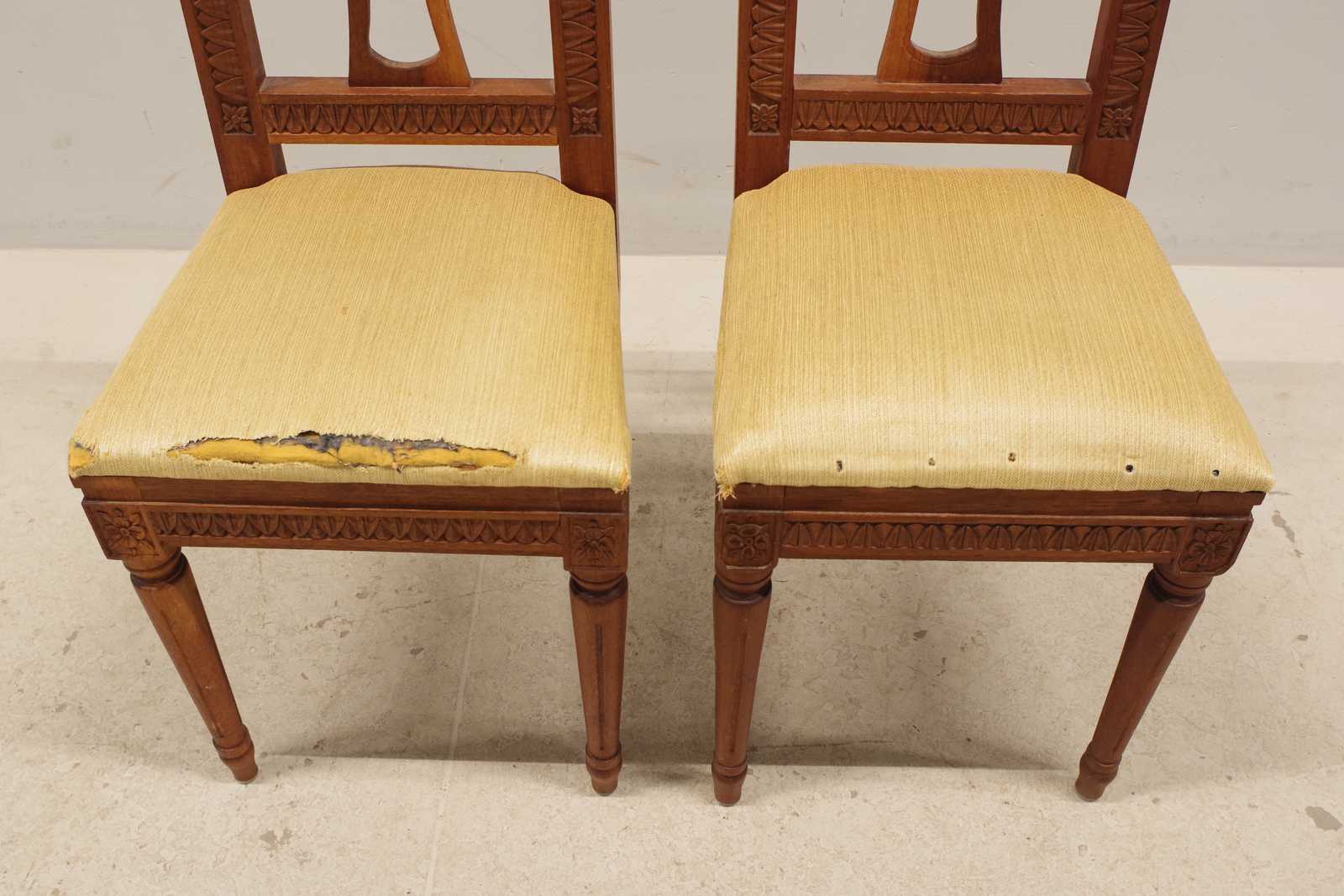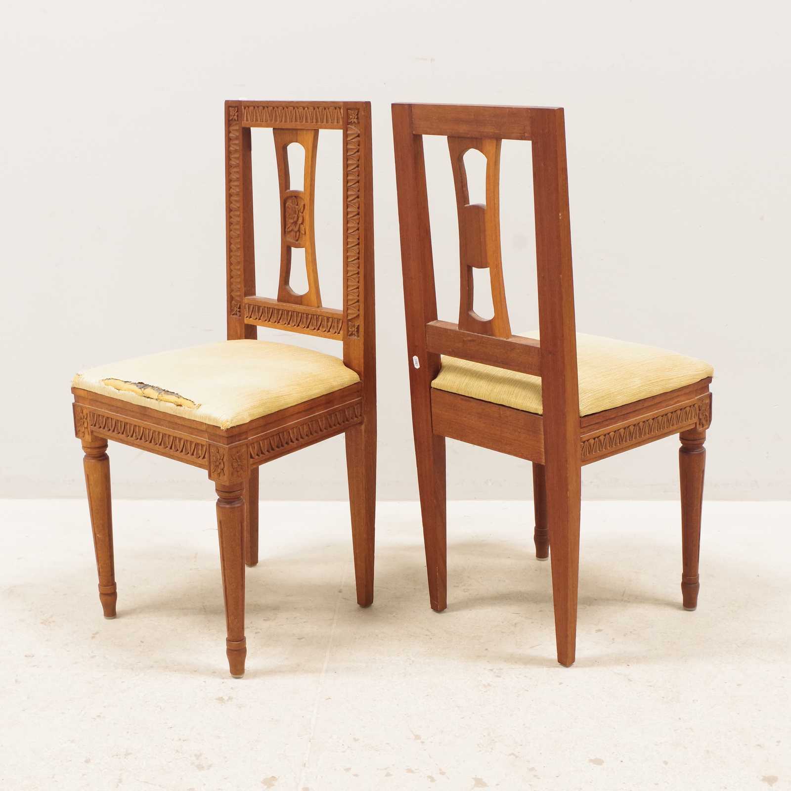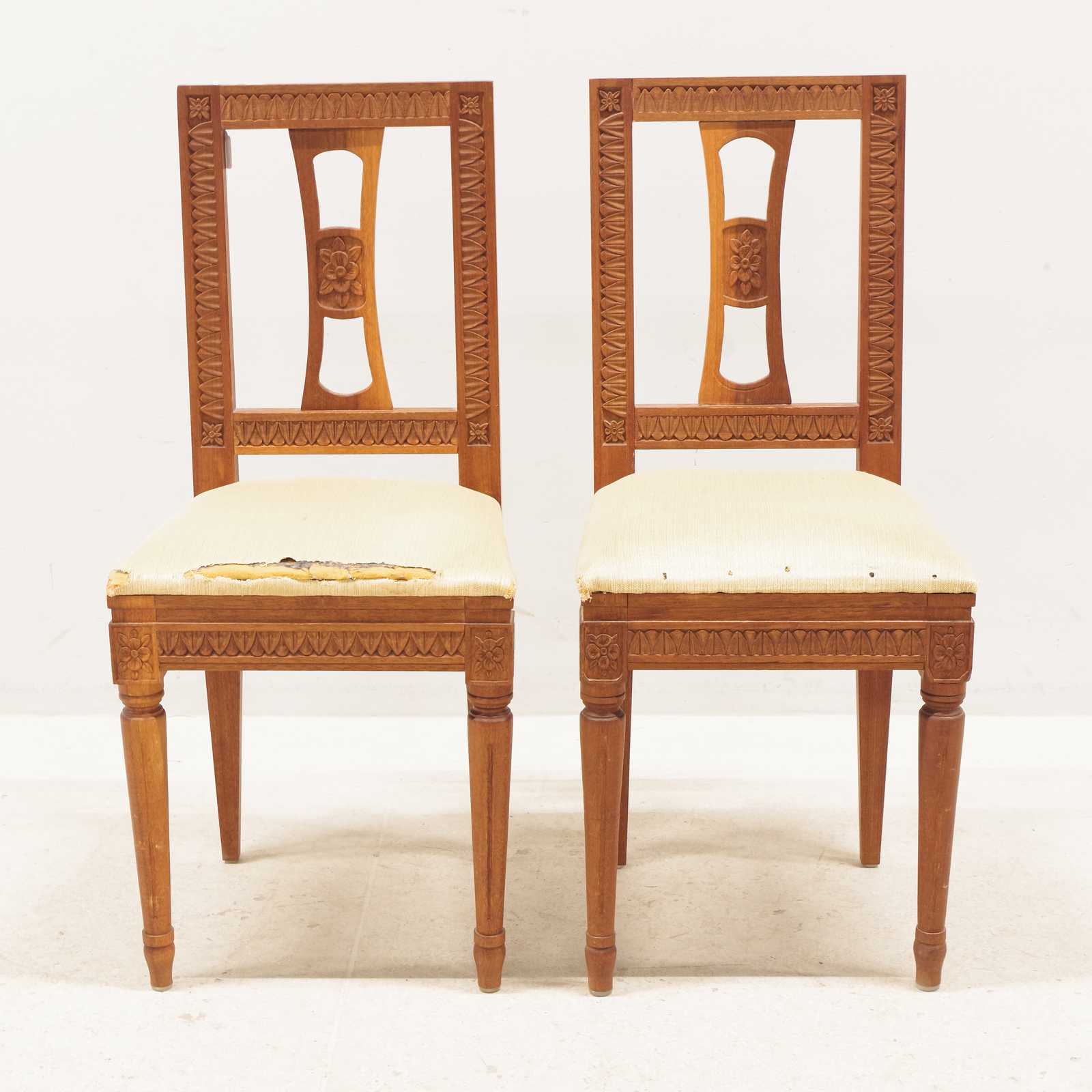 Bilder STOLAR paret, gustaviansk stil, mahogny, 1900 talets första hälft. sitthöjd: 45cm (skadad klädsel)