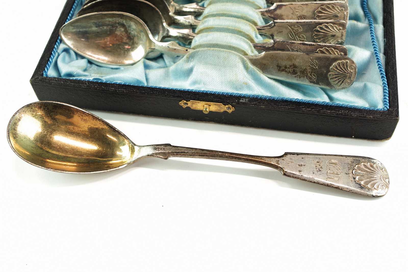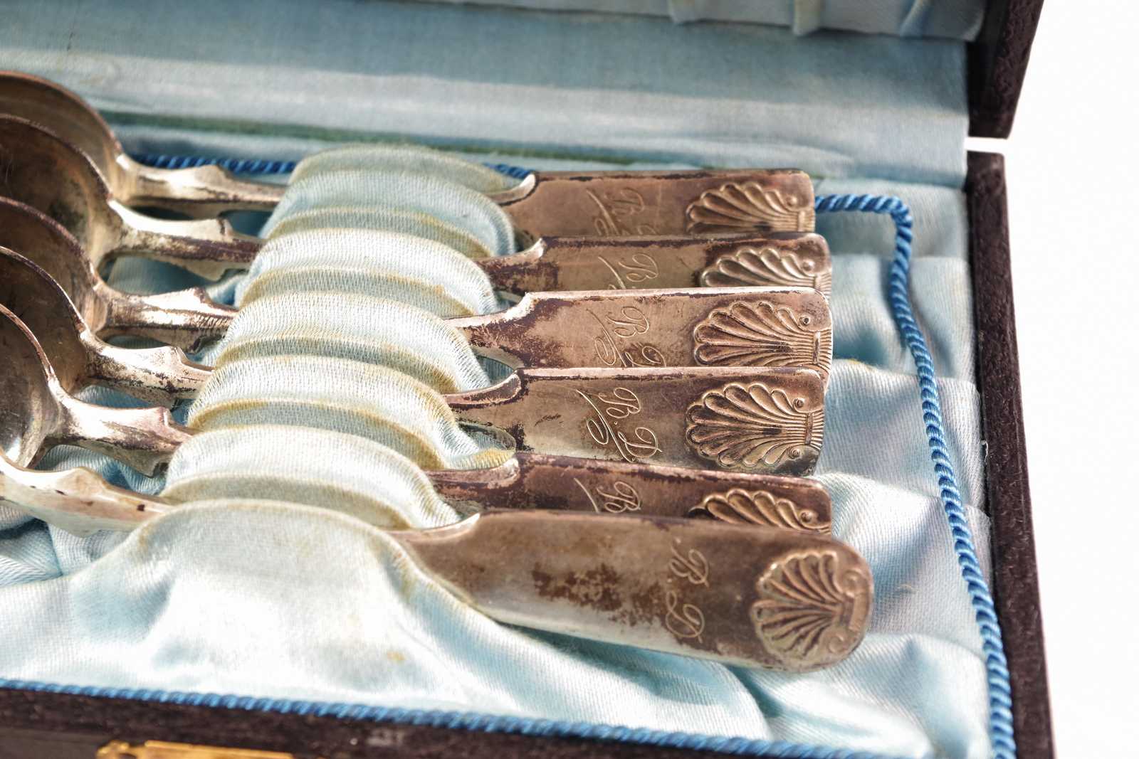 Auktioner Guld, Silver & Smycken KOMPOTTSKED & TESKEDAR silver 813, Finland L:13,5 cm Total V:130,14 g (inskription, slitage)