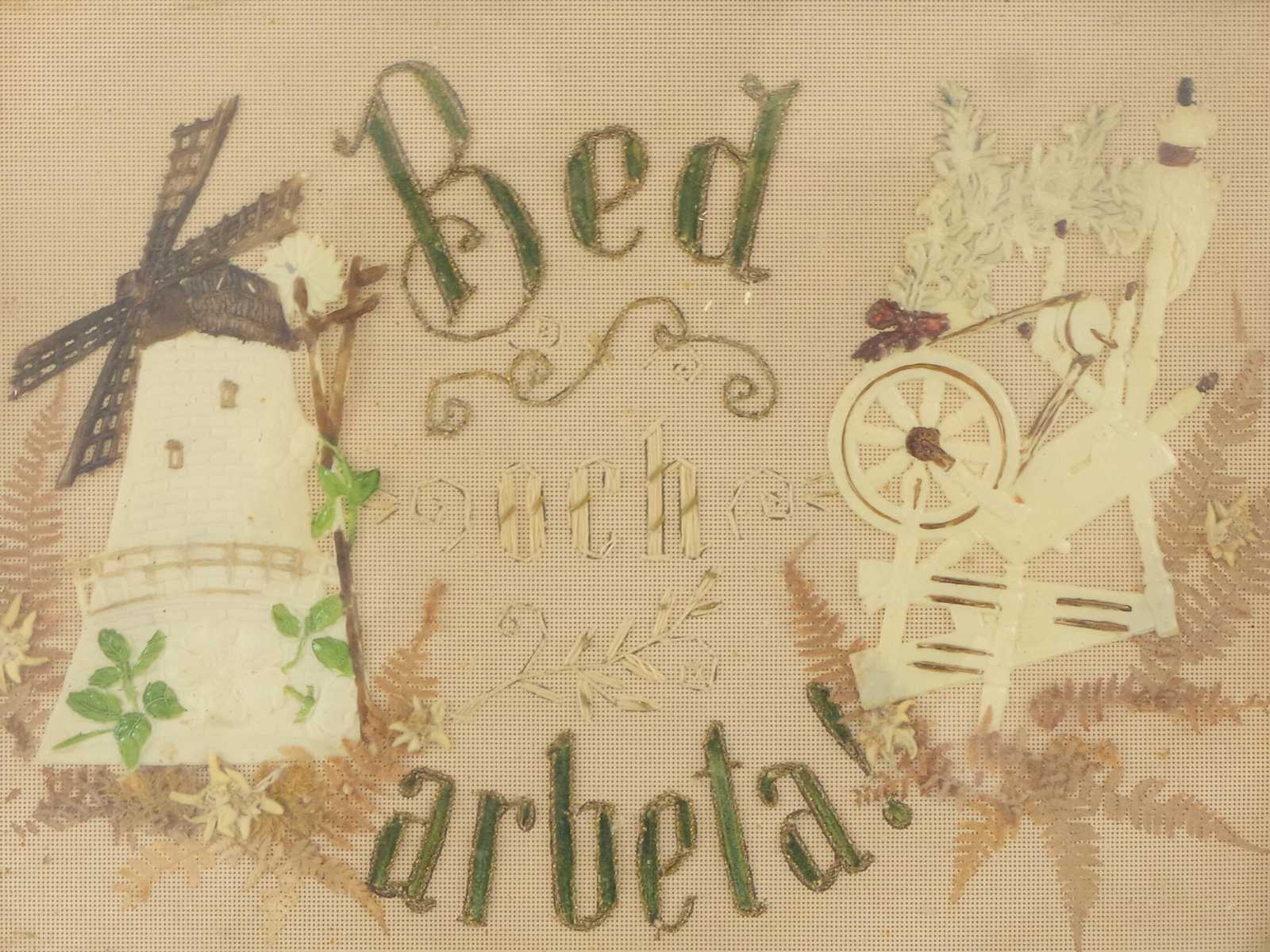Bilder TAVLA Collage, plast, broderi med mera, äldre. 47x37cm rammått
