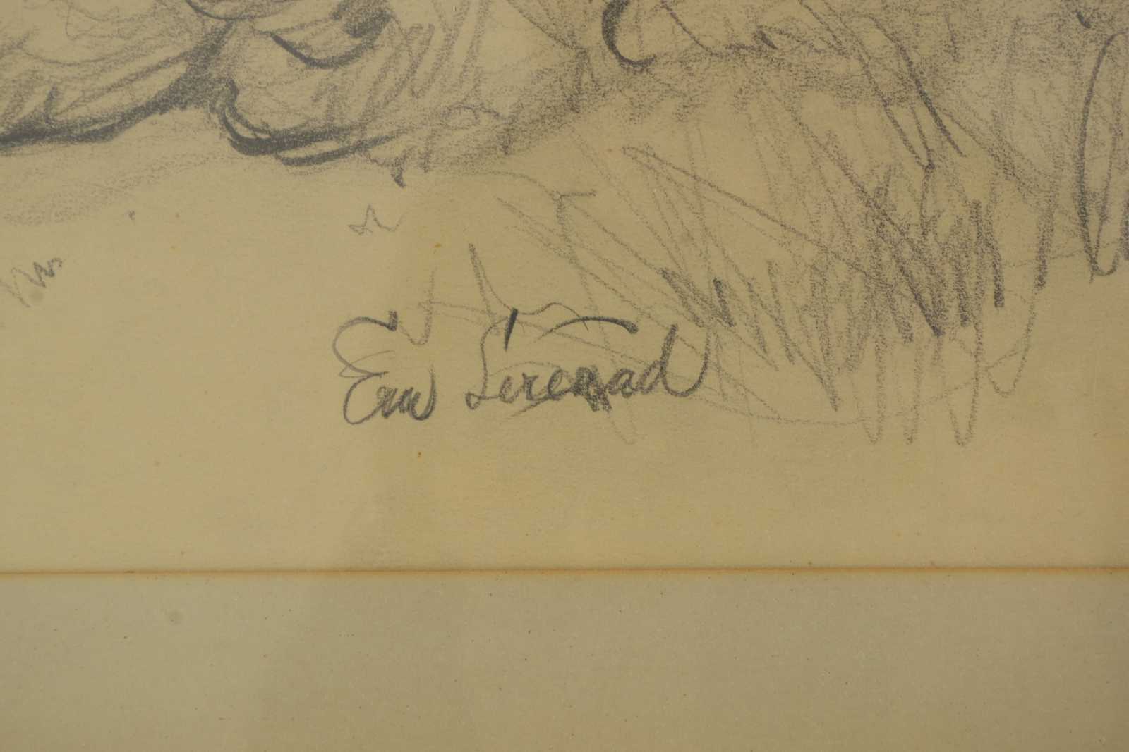 Auktioner Konst & Grafik TAVLA Oidentifierad konstnär, blyerts, signerad & daterad. 49x55cm bildytans mått
