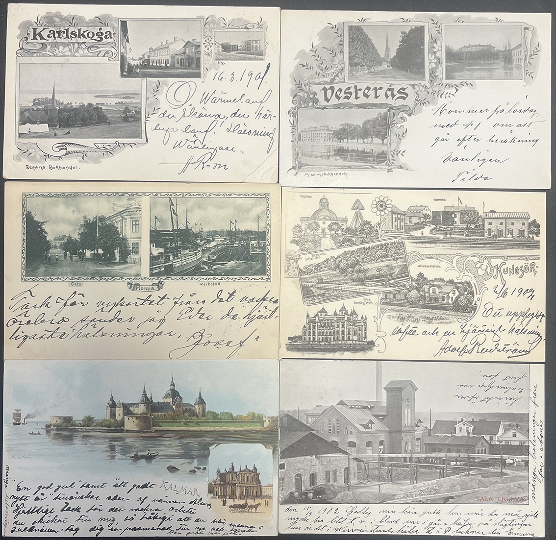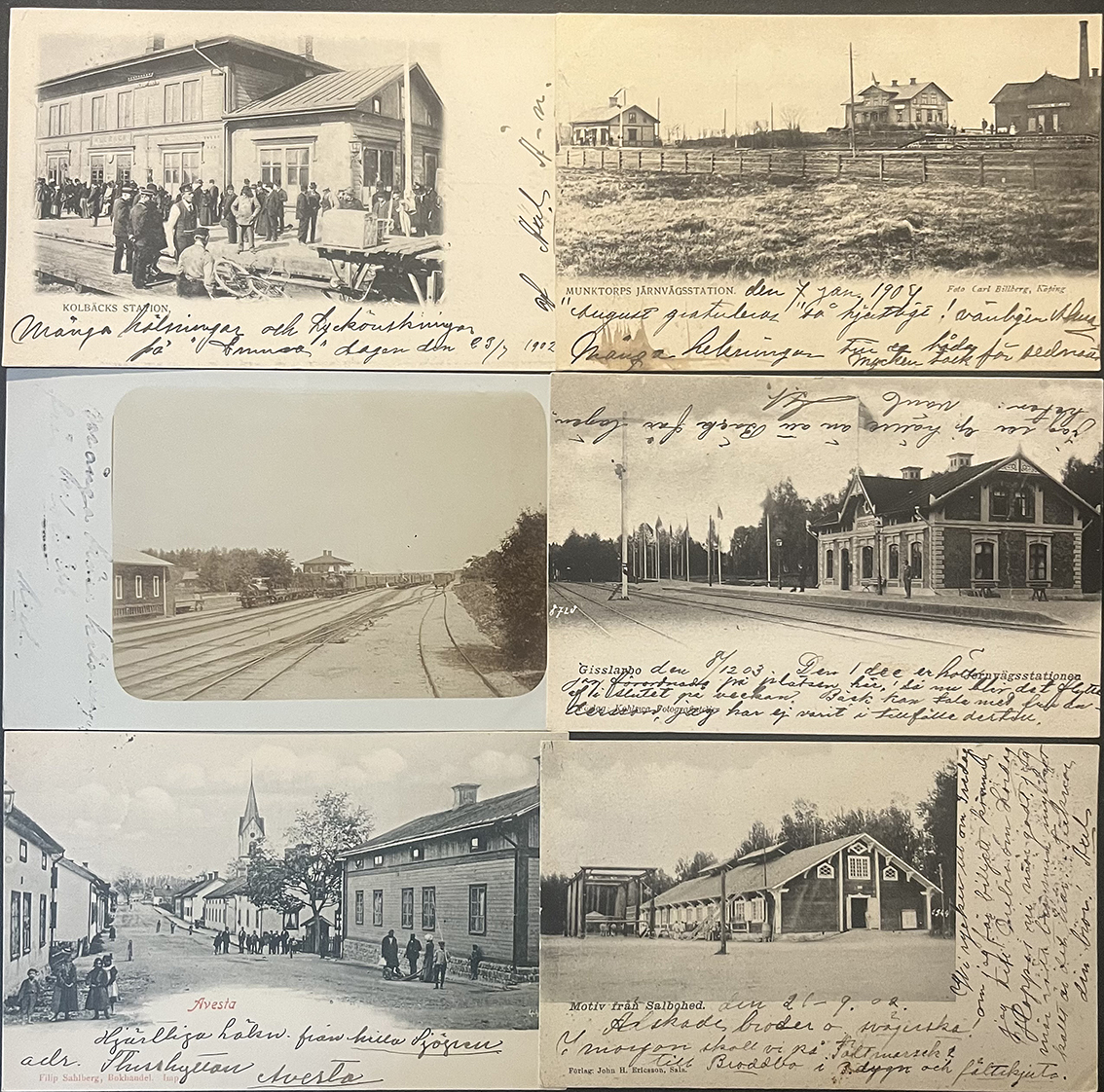 Ca 120 äldre topografiska vykort, bl a 10 järnvägsstationer.