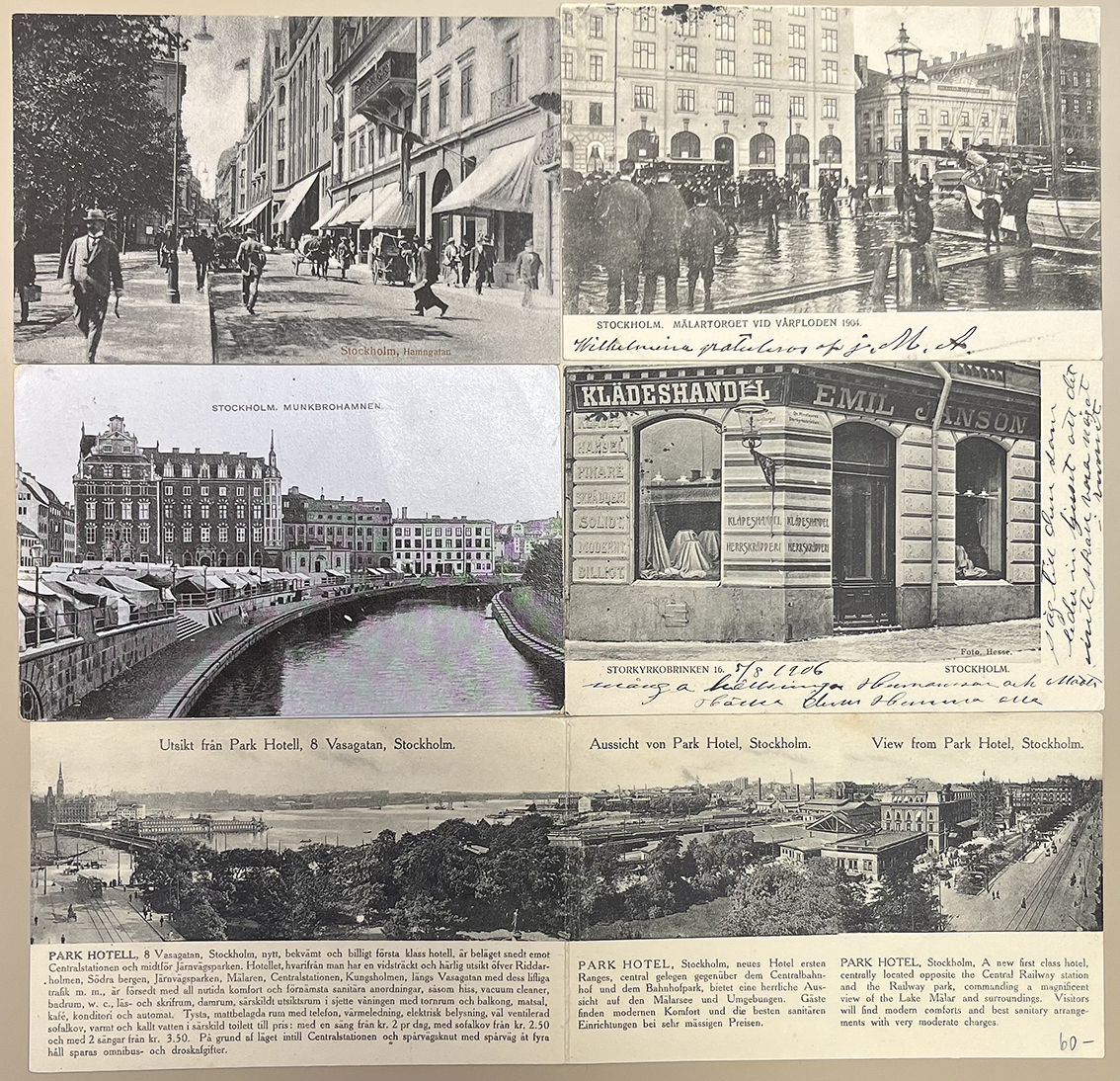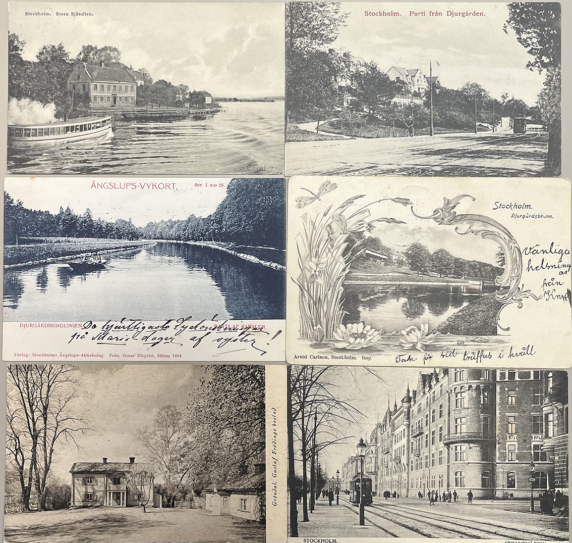 Stockholm. Samling i 2 album med fler än 500 vykort, mest äldre topografi.