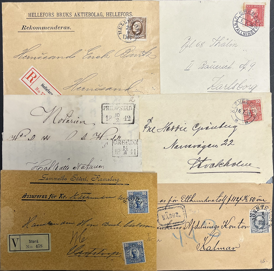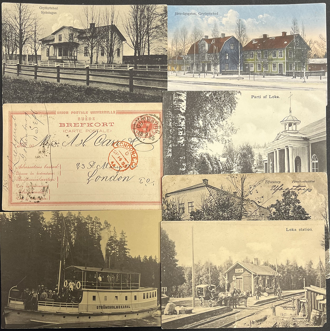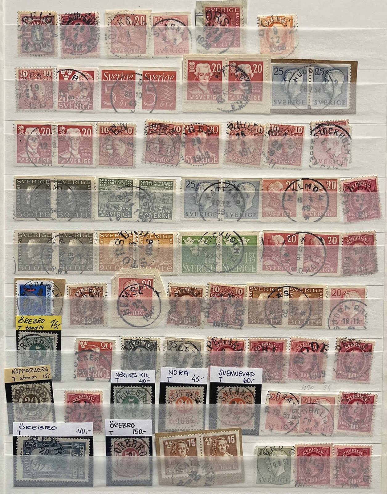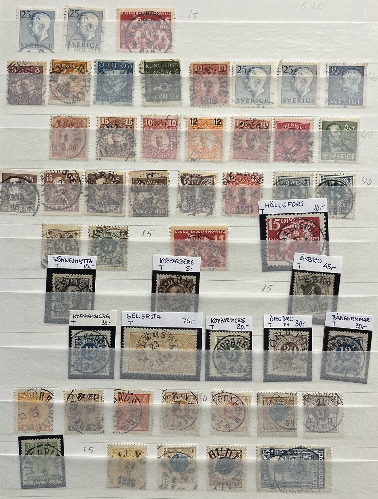 2 insticksalbum, bl a 4 sk bco (7 ex) samt många Ringtyp och O II med vackra stämplar, även bunt med vykort och äldre brev ingår.