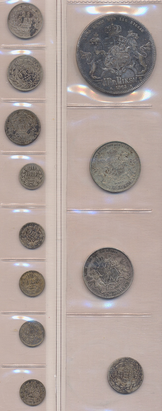 Karl XV. 12 silvermynt, bl a 4 rdr rm 1863 samt Rdr rm 1864 och 1867.
