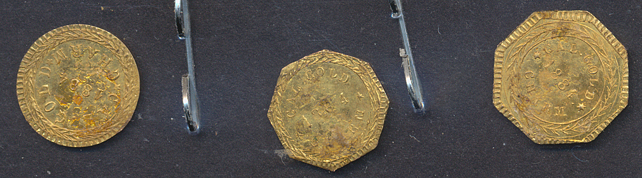 USA. California Gold Charms 1884. 3 different, 0,38 grams in total weight.