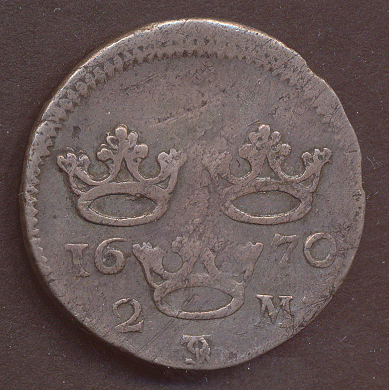 Karl XI. 2 mark 1670. 9,51 g. SM 125b. SMB 186. 1/1+ repor.