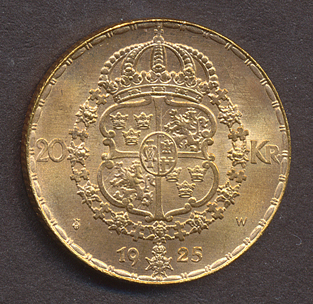Gustav V. 20 kronor 1925. SM 1. MIS 1. 01 rispor.