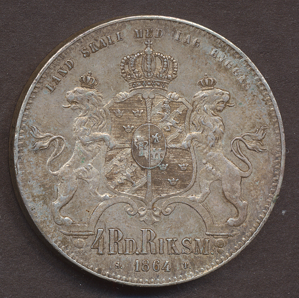 Karl XV. 4 riksdaler riksmynt 1864. SM 17. MIS 5. 1+)(1/1+.