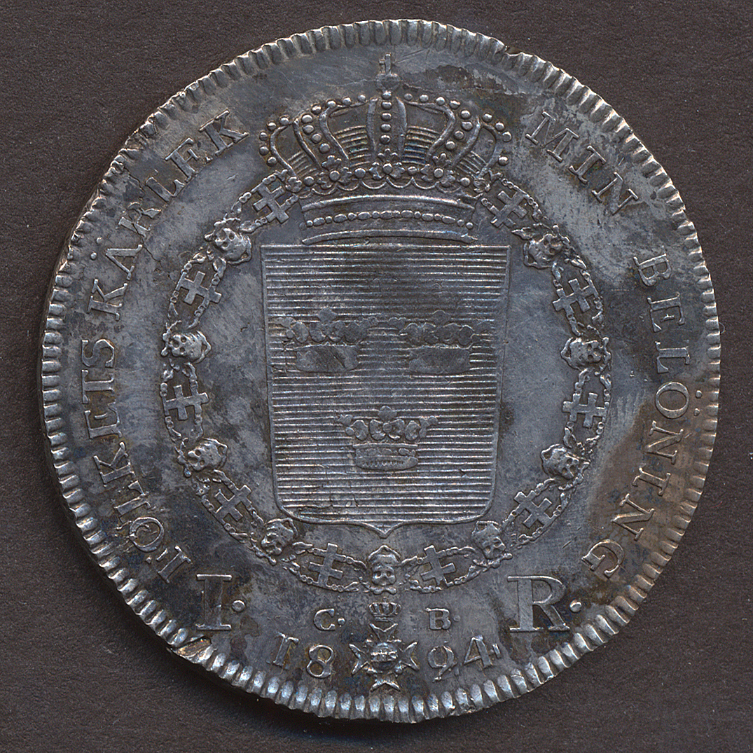 Karl XIV Johan. Riksdaler 1824. 29,27 g. SM 46. MIS I.10. 1/1+ varit rengjord, repor, ojämn patina, kanthack.