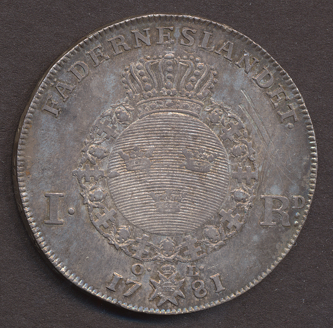 Gustav III. Riksdaler 1781, 1775 års bild. 29,36 g. SM 47a. SMB 21. 1/1+ repor.