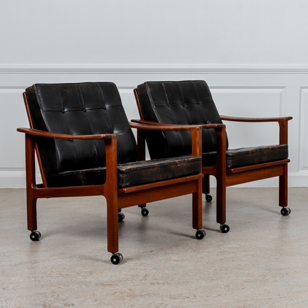 Auktioner Möbler Fåtöljer, ett par, Bröderna Andersson, teak och läder, 1960-tal