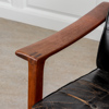 Fåtöljer med lösa plymåer i läder. Stomme i teak.