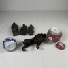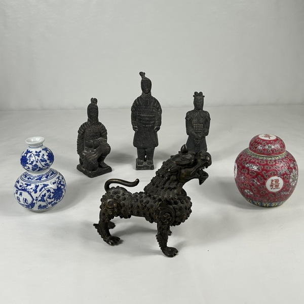 Skulpturer, 3st, terrakotta. Tempellejonskulptur, brons. Höjd 12 - 20,5 cm.