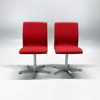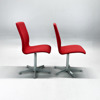 Stolar från Fritz Hansen, modell Oxford Classic. Formgiven av Arne Jacobsen. 2 stycken. Röd klädsel och underrede i borstat stål.
