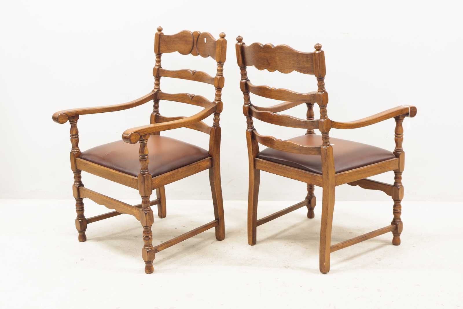 KARMSTOLAR paret, i ek, 1900 tal. sitthöjd: 48cm